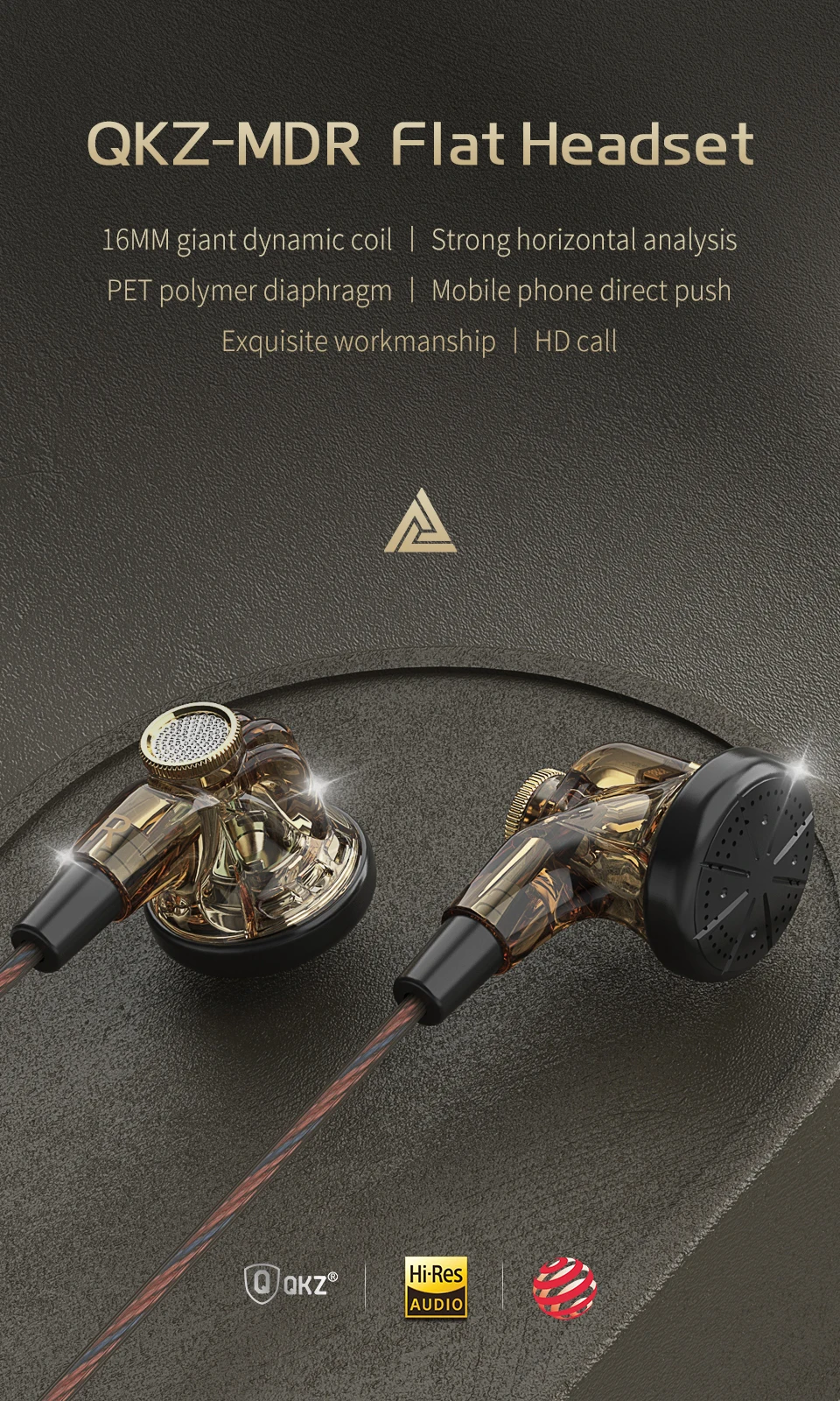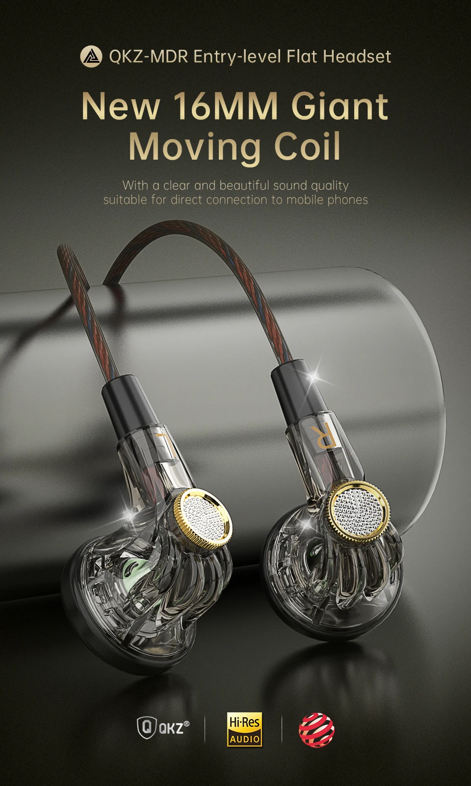 Comprar QKZ-auriculares MDR de cabeza plana, audífonos con cable de 16MM, bobina móvil grande, HIFI graves, flexión en L, AUX Fancier de 3,5 MM, originales