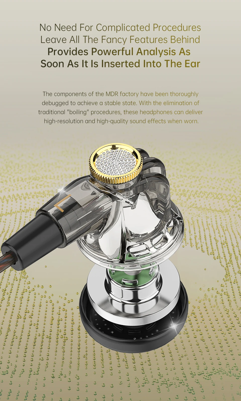 Como auriculares planos HiFi de nivel básico, el modelo MDR cuenta con características de baja impedancia y alta sensibilidad. Es muy adecuado para los oyentes que buscan mejorar su experiencia auditiva sin la necesidad de costosos outputfront-ends. Incluso cuando se utiliza con teléfonos móviles o reproductores de MP3, puede producir delicadas frecuencias bajas y medias.
