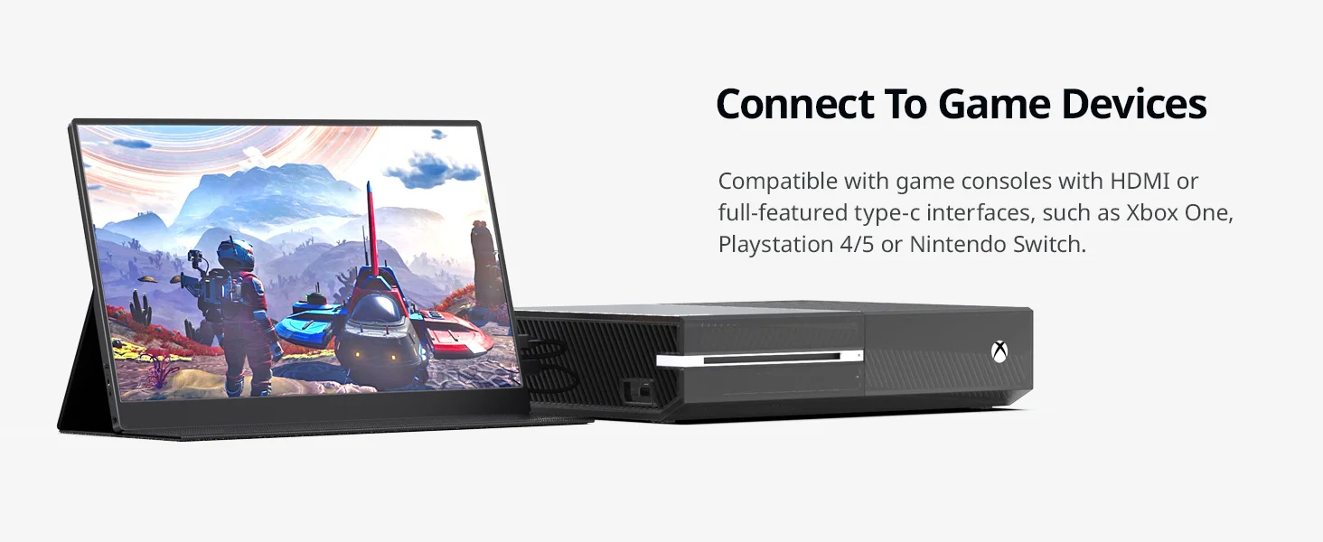 • Pantalla externa FHD:Conecte su Mini PC, ordenador portátil, PS5/4, Switch o Xbox a esta pantalla de visualización externa FHD para ampliar el área de visualización y mejorar la productividad.