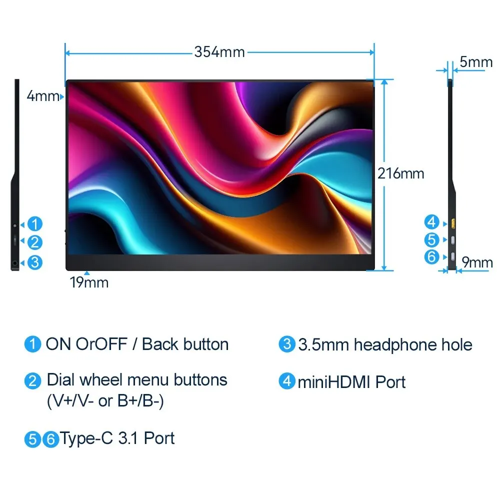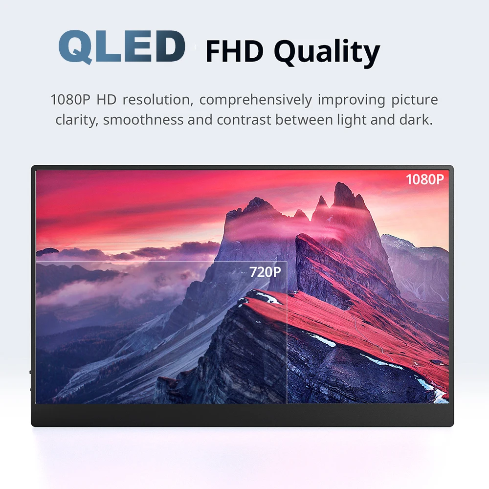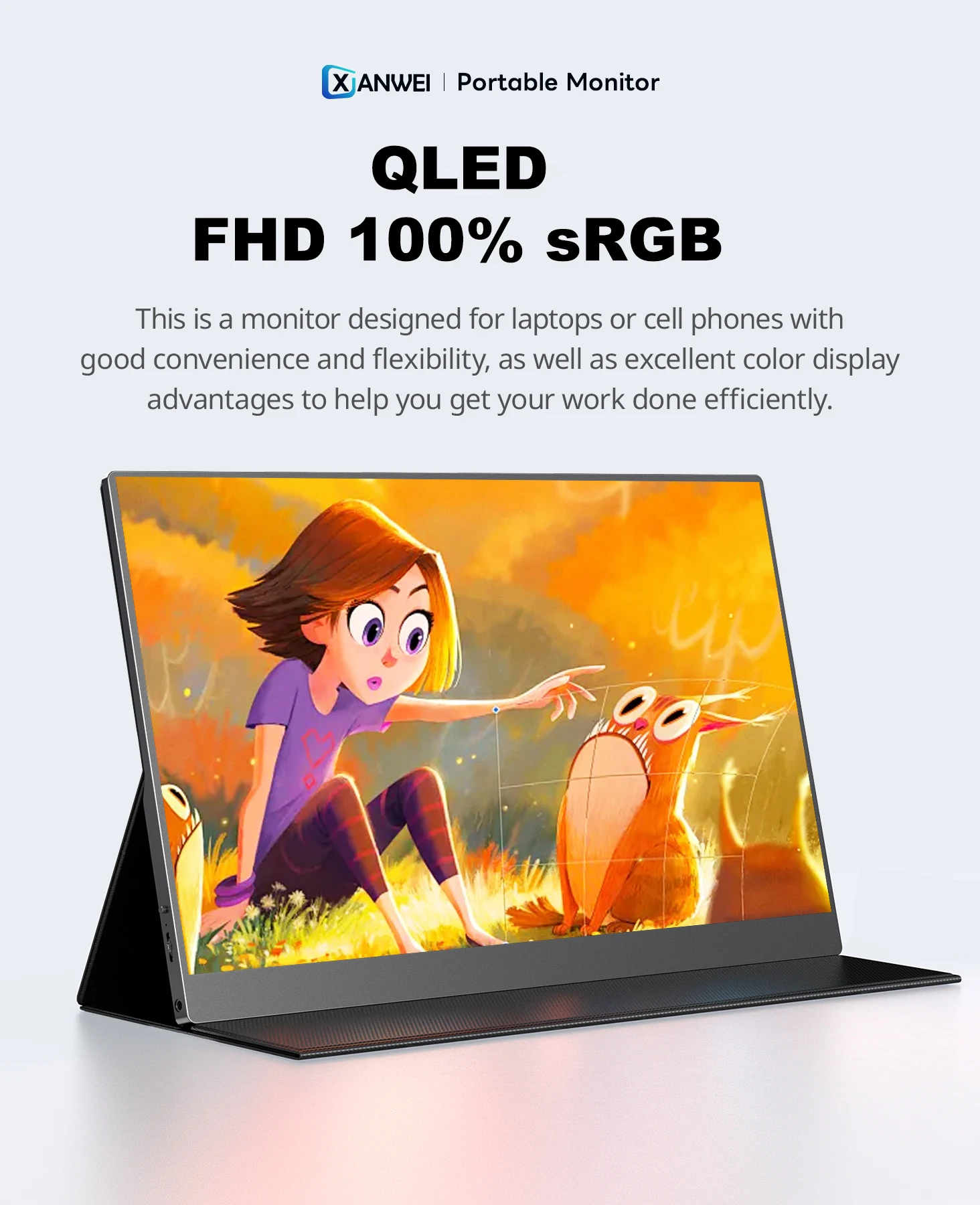 • Pantalla QLED de 15,6 pulgadas:Experimente colores vibrantes y efectos visuales nítidos con el monitor portátil de oficina XIANWEI QLED de 15,6 pulgadas. Su pantalla de alta resolución garantiza una visualización inmersiva de su contenido favorito.