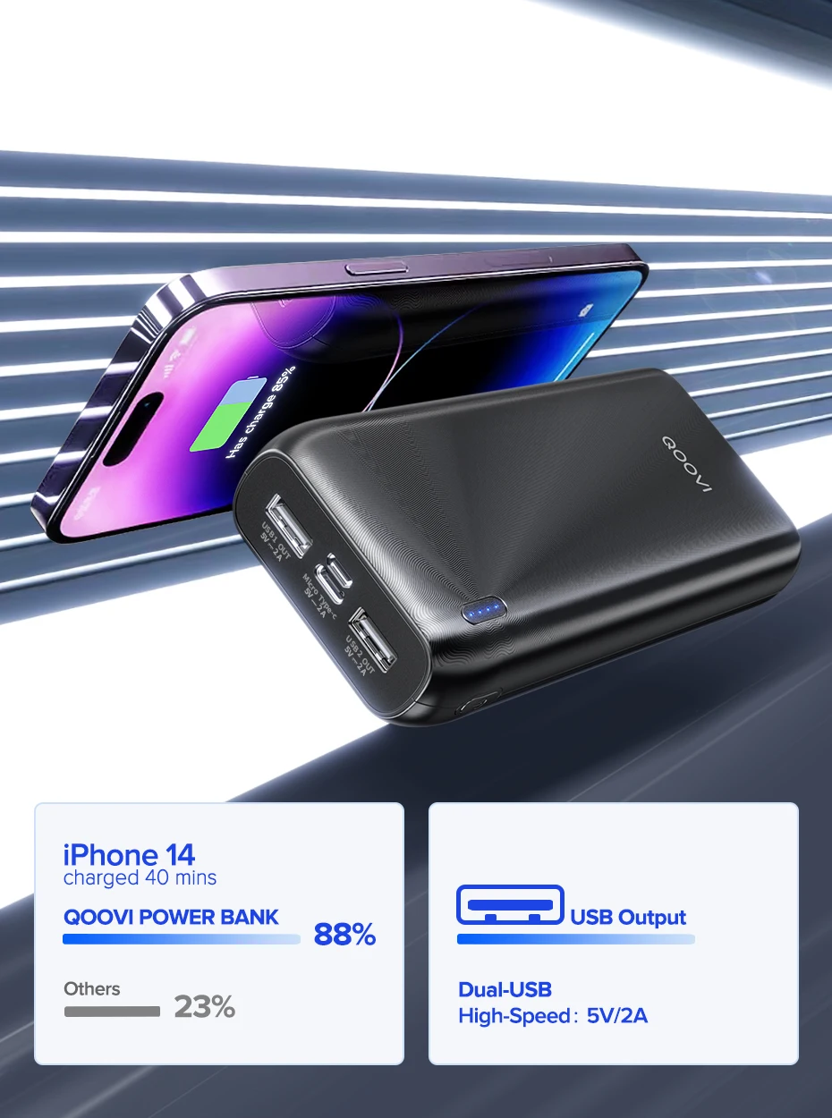 Comprar QOOVI-Batería Externa de 20000mAh, cargador portátil ultrafino para iPhone 15, Xiaomi, Samsung y Huawei