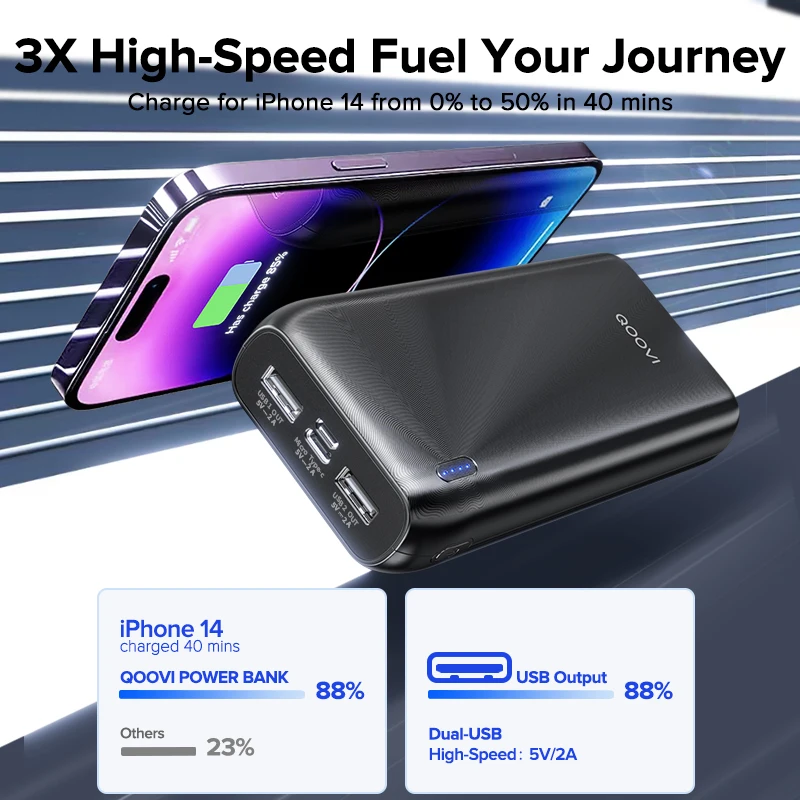 Comprar QOOVI-Batería Externa de 20000mAh, cargador portátil ultrafino para iPhone 15, Xiaomi, Samsung y Huawei