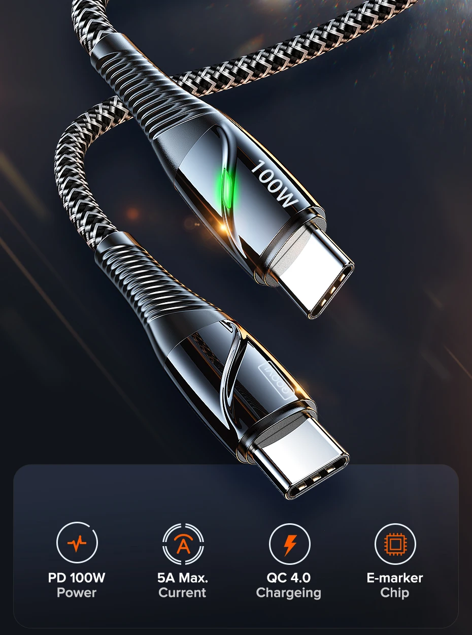 Comprar QOOVI-Cable USB tipo C a USB tipo C para portátil, cargador de USB-C de carga rápida para Xiaomi, Huawei y Samsung, 3M, PD, 100W