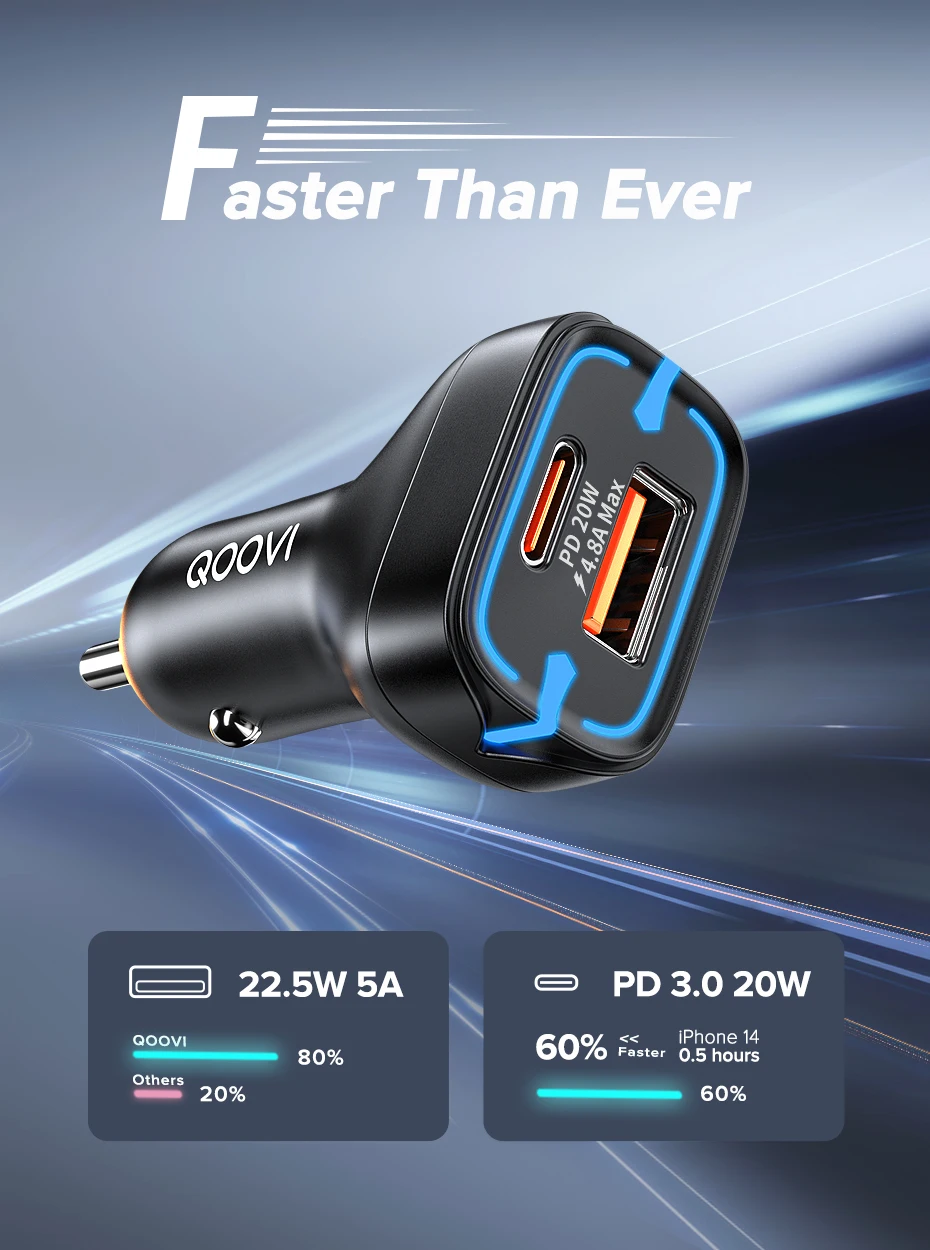 Cargador de coche de 2 puertos QOOVI 42,5 W