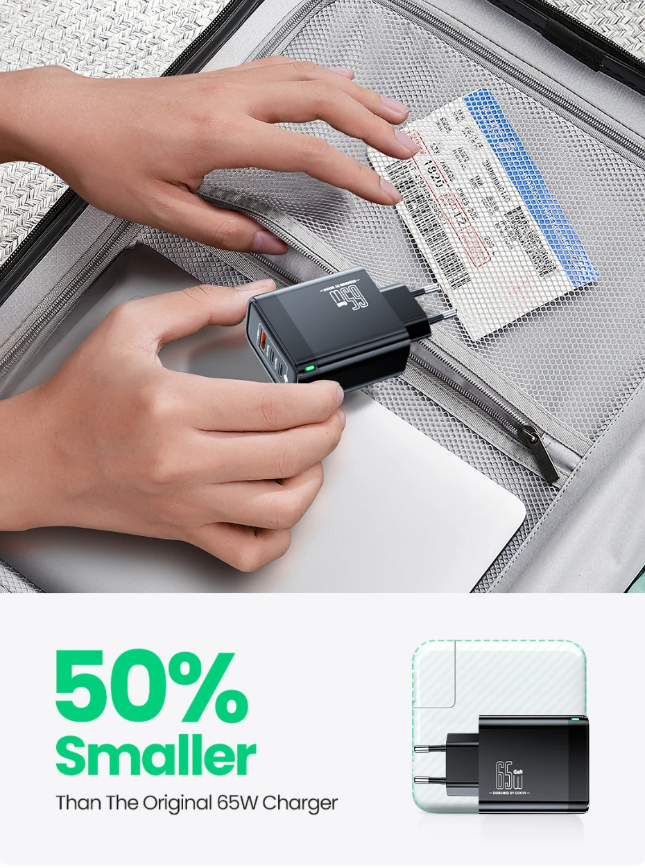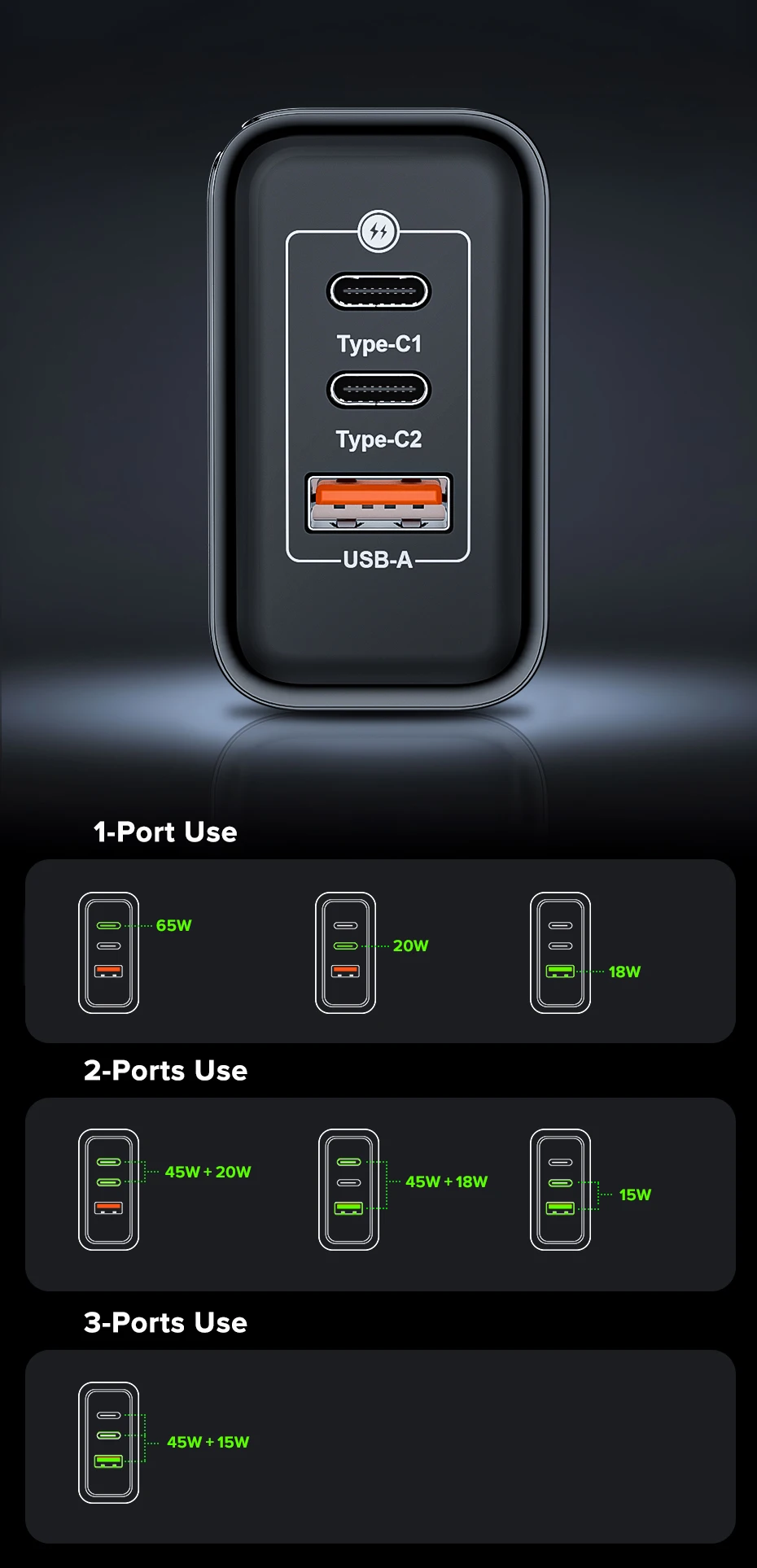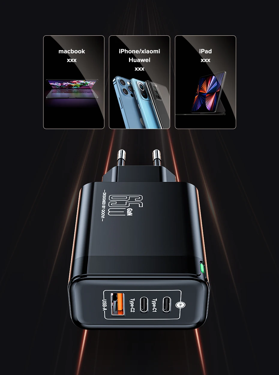 Cargador de 3 puertos QOOVI 65W GaN-II