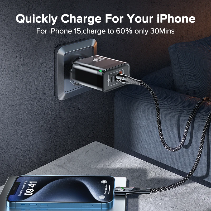 Cargador de 3 puertos QOOVI 65W GaN-II