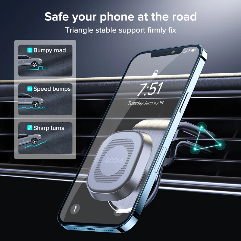 Comprar QOOVI-soporte magnético de teléfono móvil para coche, montaje de ventilación de 360 grados, GPS, para iPhone 12, Xiaomi Mi11, Samsung y Huawei