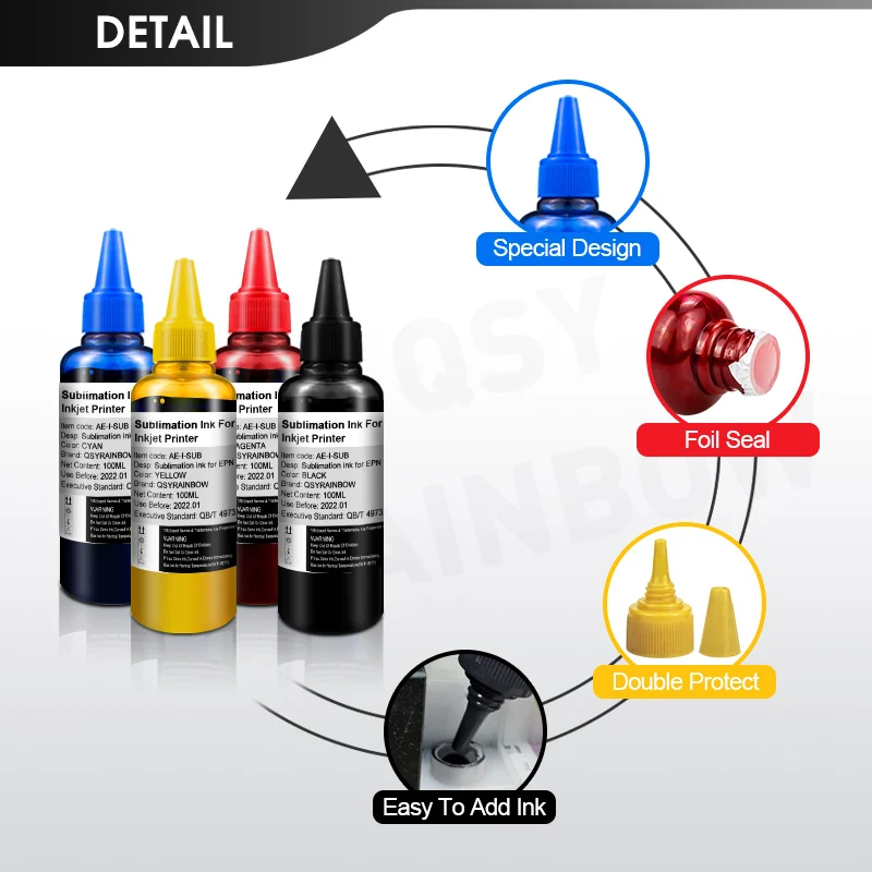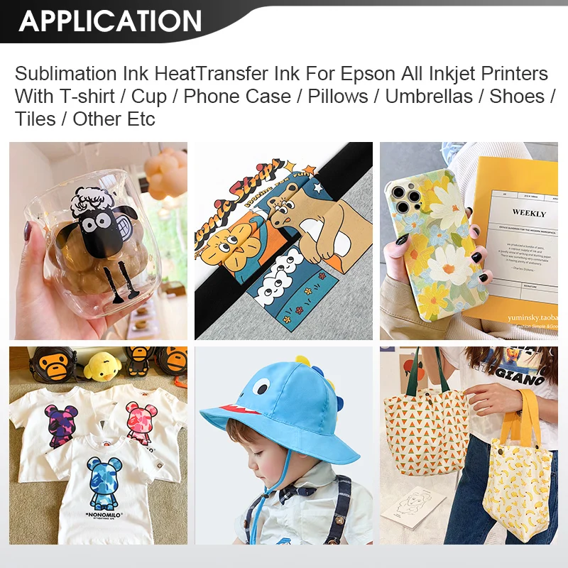 Tinta de sublimación de transferencia de calor para todas las impresoras de inyección de tinta Epson con camiseta/tapa/funda para TELÉFONO/almohadas/paraguas/zapatos/azulejos/otros, etc.