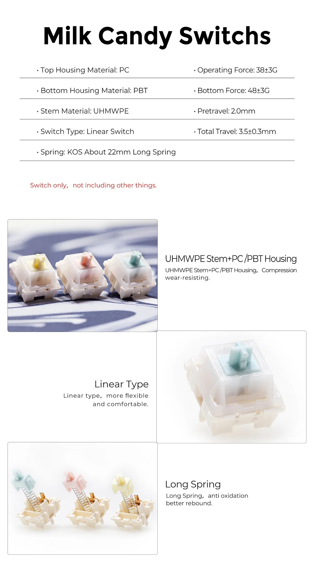 Comprar QTUO interruptor lineal Milk Candy, eje MX para teclado mecánico para juegos, PBT, 38g, 48g, KOS, resorte largo, 5 pines