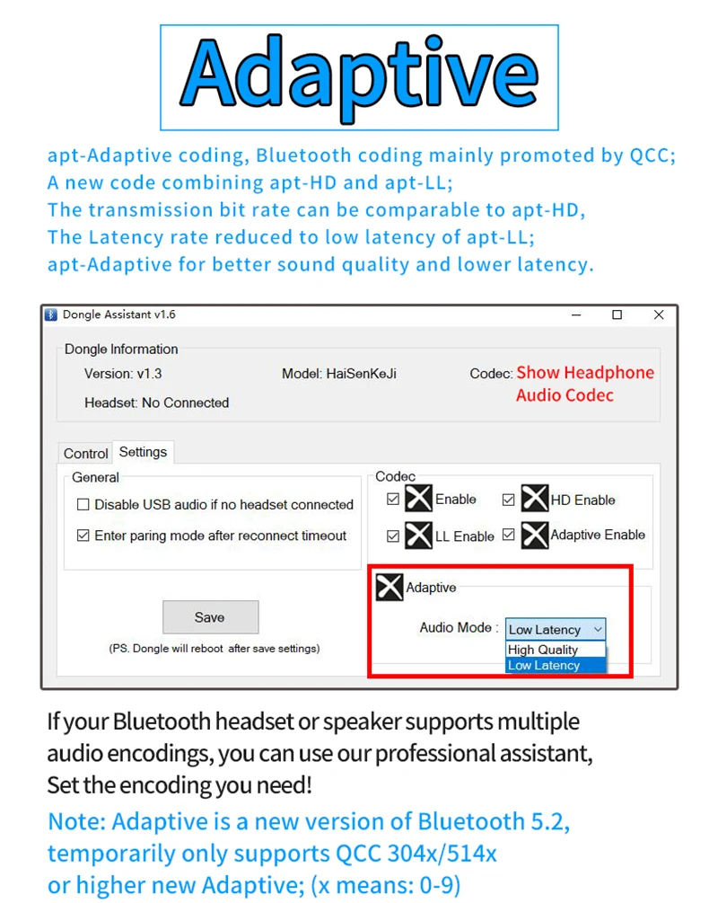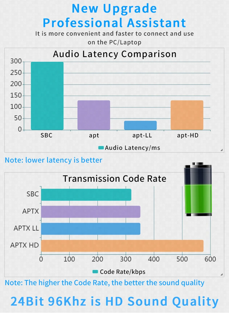 Códec de audio: SBC/ /apt-LL/apt -- HD/apt -- Adaptive/SBC