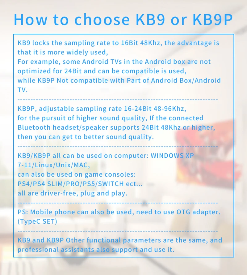 --- KB9P 24Bit:16-24Bit, no compatible con parte de Android Box/Android TV.
