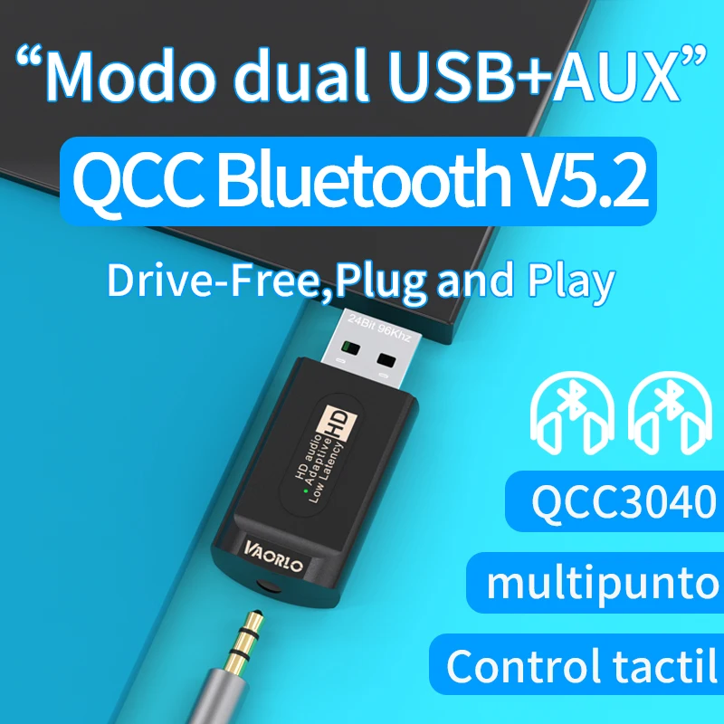 ----- 3,5 MM AUX + USB Daul Mode Bluetooth 5,2 Adaptador de transmisor de audio;