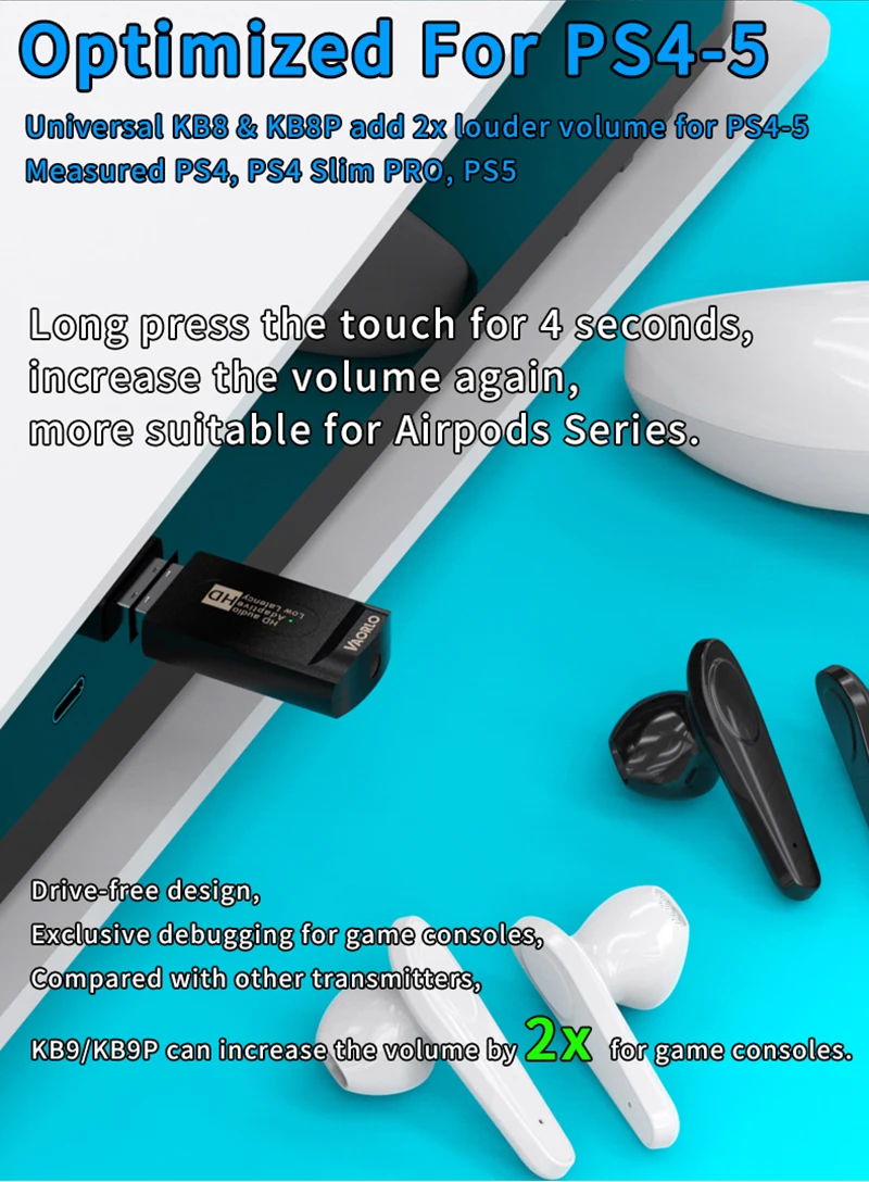 Dispositivos compatibles: adecuado para TV, ordenador, proyector/amplificador de potencia/TV Box/auriculares Bluetooth/altavoz Bluetooth/consola de juegos Nintendo Switch/PS4/PS4 SLIM/PS4 Pro/PS5;