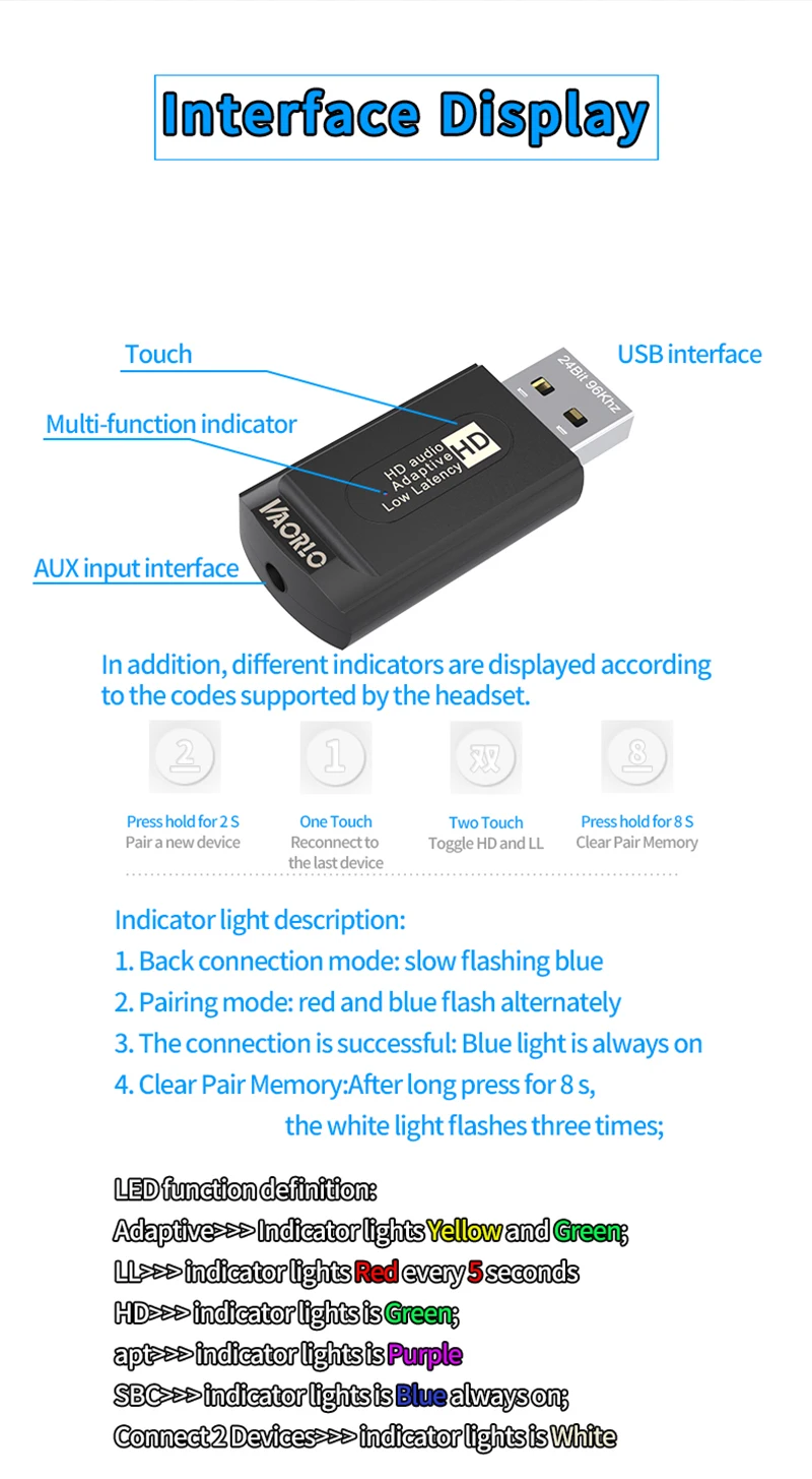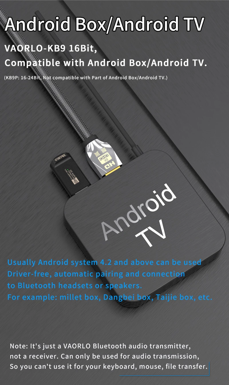 Nota: Es solo un transmisor de audio Bluetooth VAORLO, no un receptor. Solo se puede utilizar para la transmisión de audio, por lo que no puede usarlo para su teclado, ratón, transferencia de archivos.