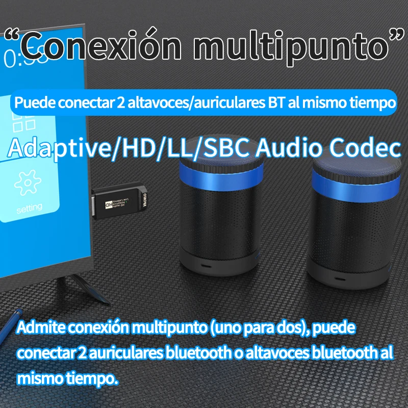 (La Función del transmisor Bluetooth es agregar una función Bluetooth a dispositivos sin función Bluetooth como TV/ordenador, para que puedan conectarse a altavoces/auriculares Bluetooth. Este es un transmisor Bluetooth construido con la última tecnología, solo necesita hacer que los dispositivos Bluetooth estén cerca de este transmisor Bluetooth y luego se conectarán entre sí automáticamente).