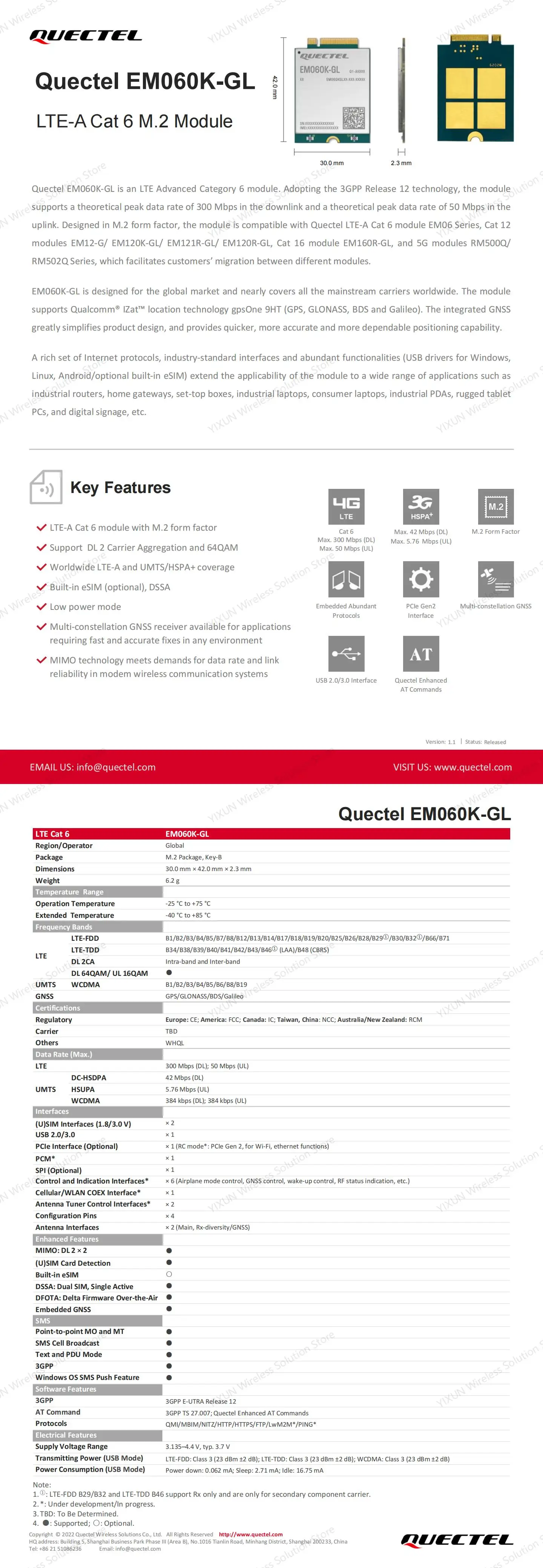 Comprar Quectel EM060K-NA LTE Cat6 M.2 Módulo North Amercia eSIM Compatible con EM06-A EM12-G EM121R-GL EM120R-GL EM160R-GL RM500Q-GL