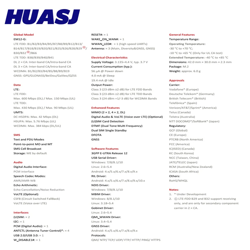 * Módulo Cat 12 con factor de forma M.2, optimizado para aplicaciones eMBB e IoT.