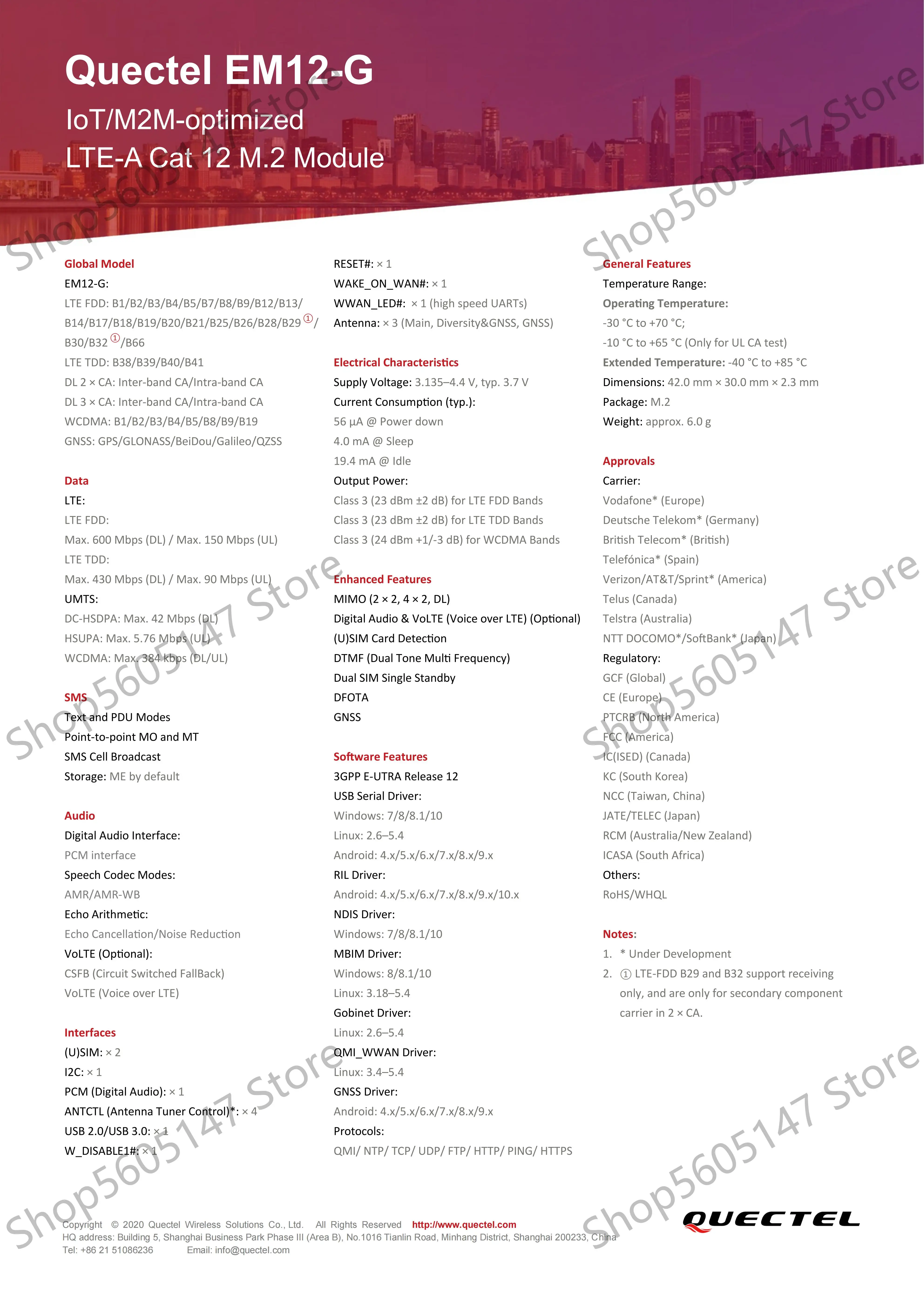 Comprar Quectel-EM12-G EM12 Cat12, Módulo B1/B2/B3/B4/B5/B7/B8/B9/B12/B13/B14/B17/B18/B19/B20/B21B25/B26/b28/B29/B30/B32/B66