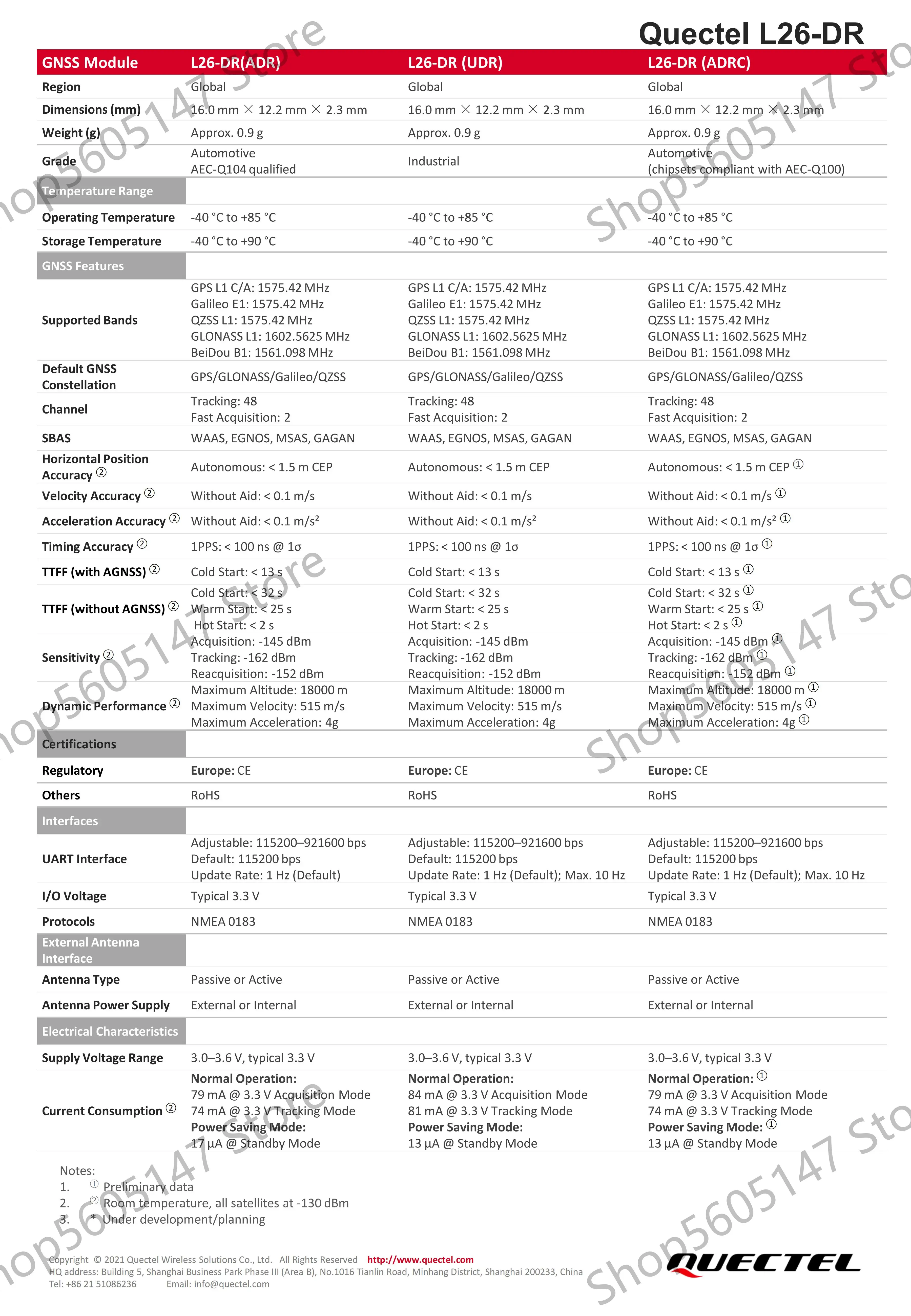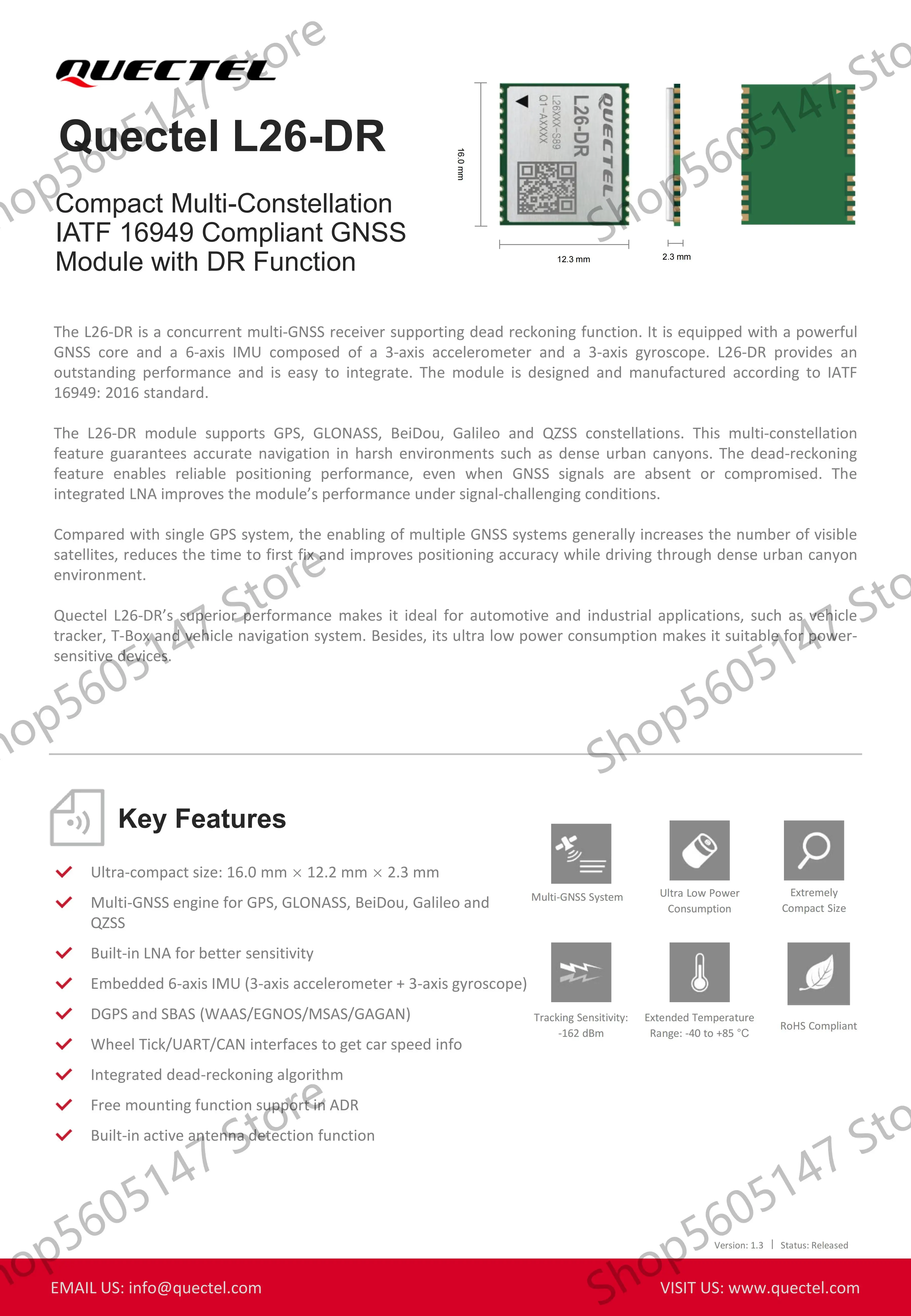 Comprar Quectel GNSS L26UDR-S89 Módulo receptor multi-GNSS de corriente Posicionamiento de reconocimiento muerto GPS GLONASS BDS Galileo QZSS