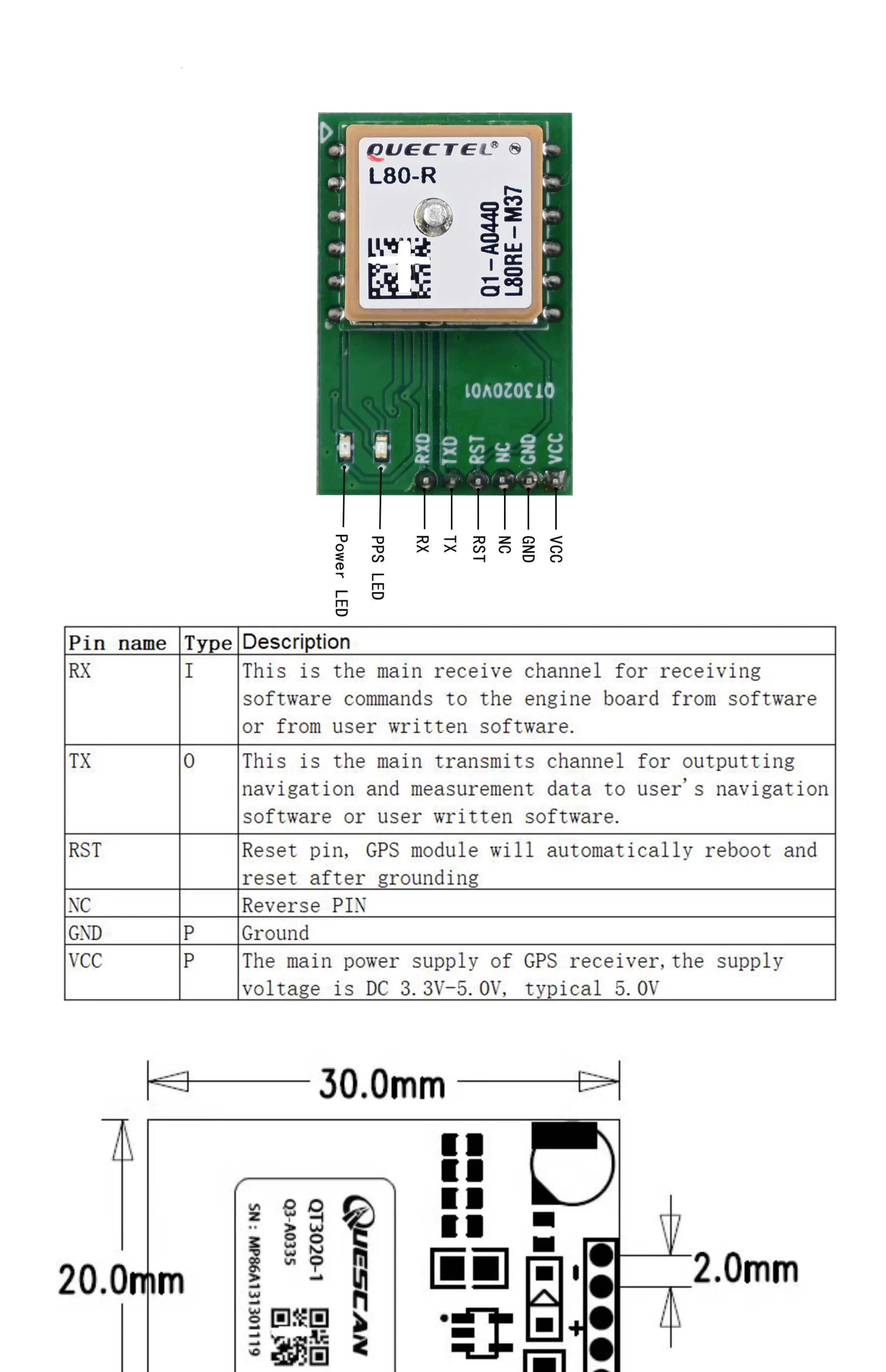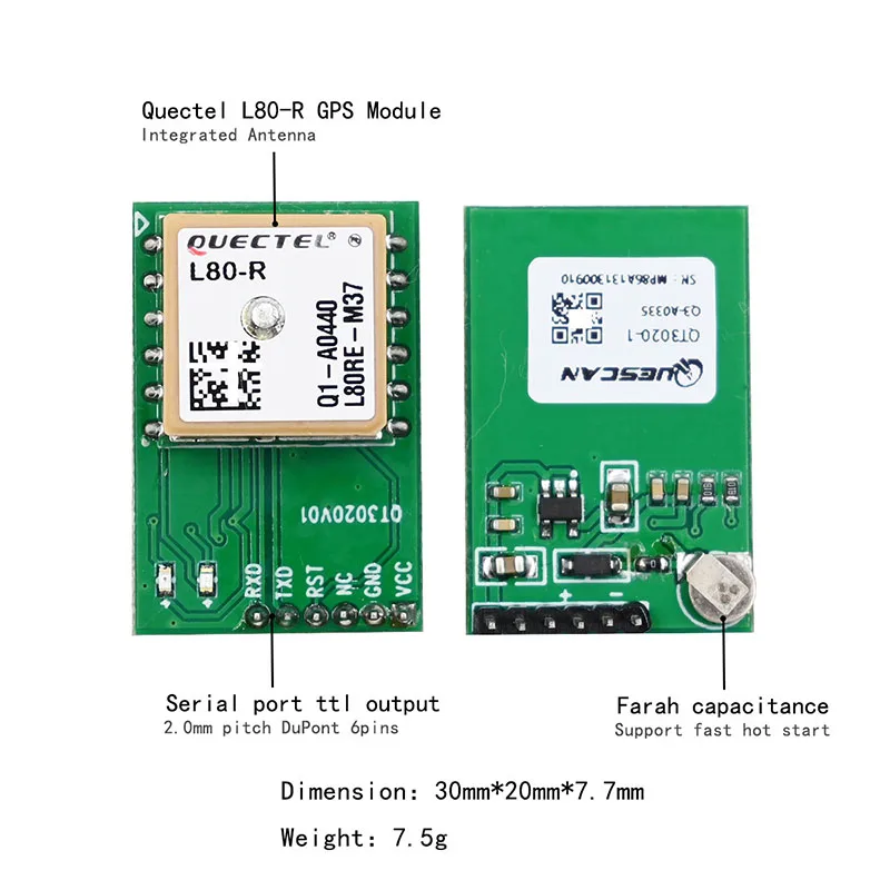 El módulo GPS se basa en QuectelL80-R, con 66 canales de búsqueda, compatible con GPS+QZSS.