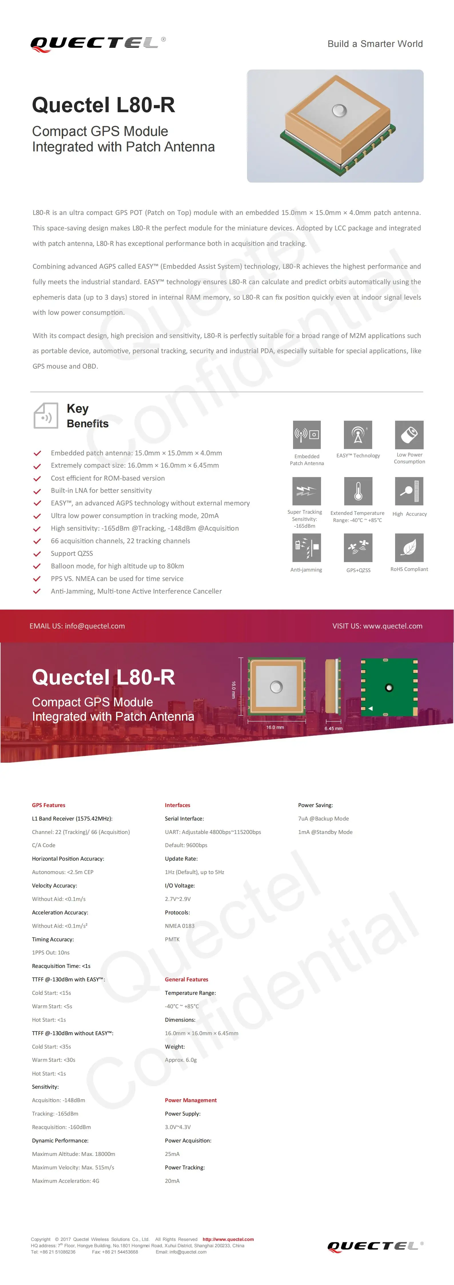 Comprar Quectel L80 L80-R L80RE-M37 GPS con placa de desarrollo de módulo de antena LCC 16*16*6,45mm compatible con QZSS MTK3337