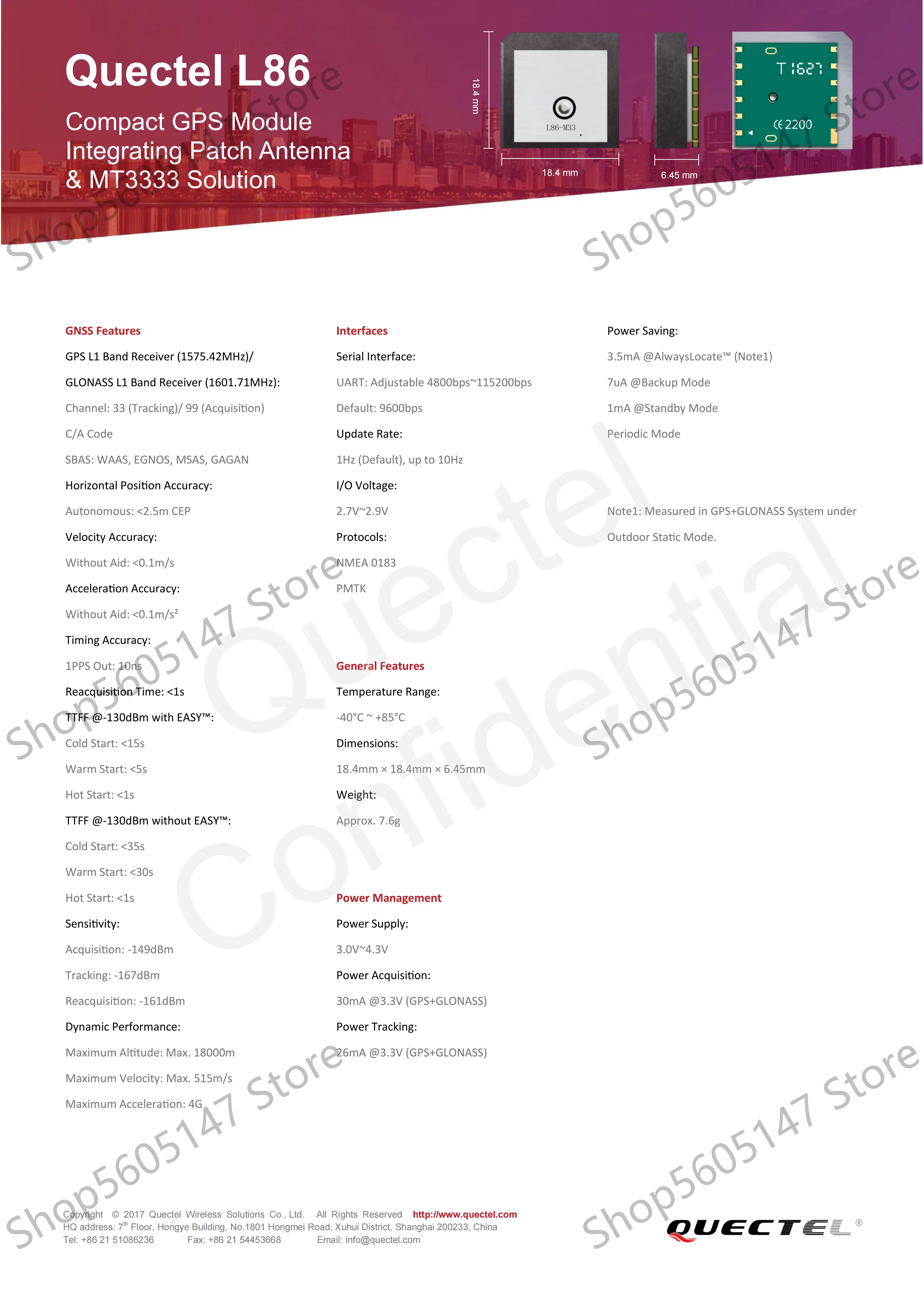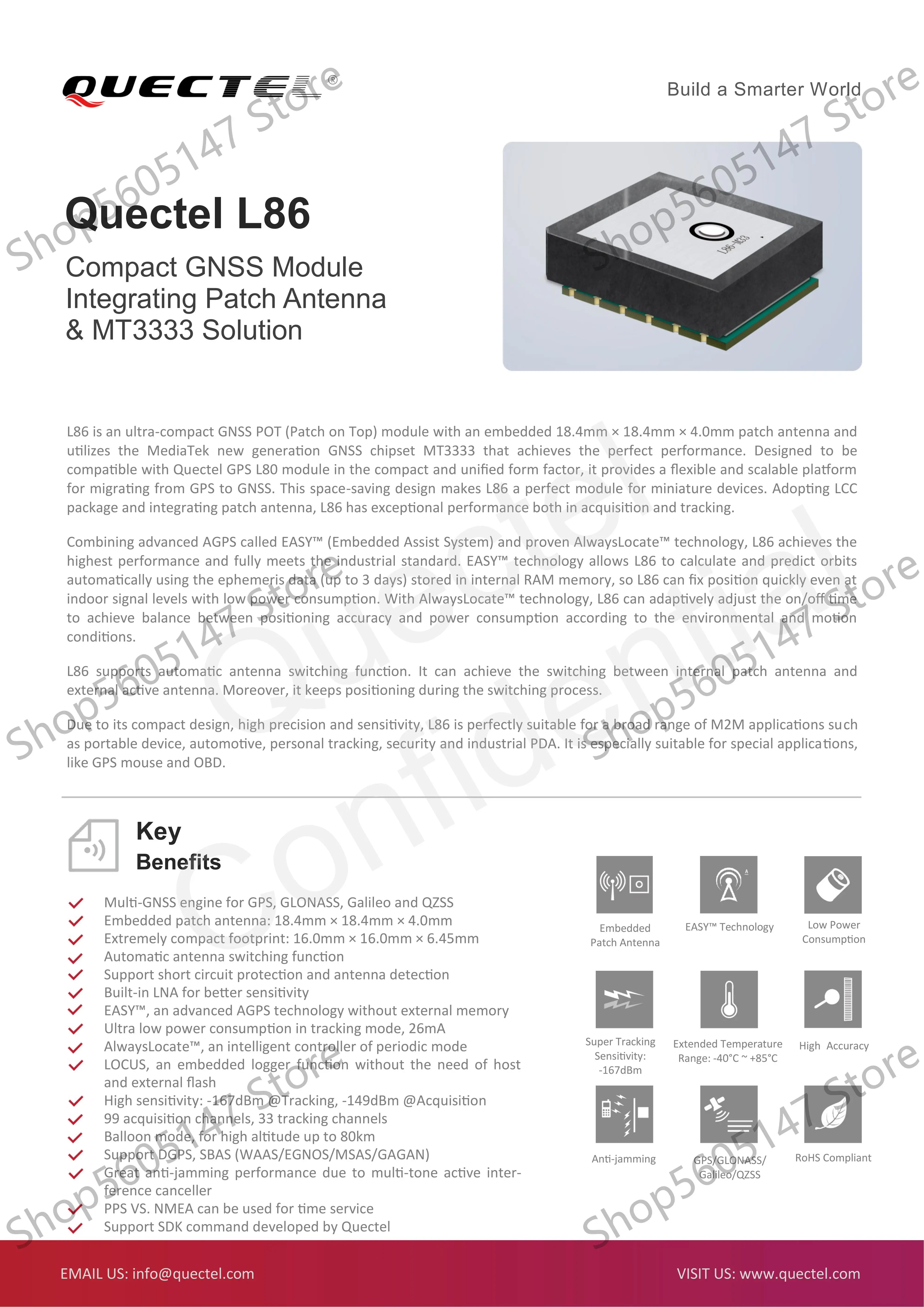 Comprar Quectel L86 L86-M33 GPS Ultra-Compact GNSS POT (Patch on Top) Módulo 18,4mm * 18,4mm MT3333 Chip compatible con GPS GLONASS Galileo QZSS