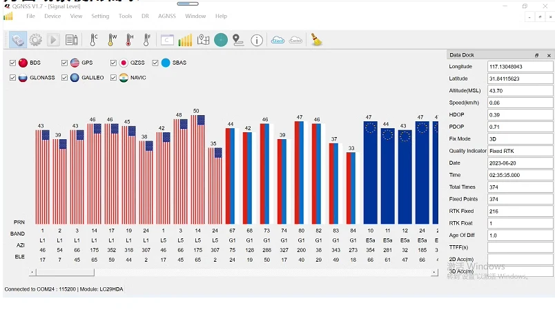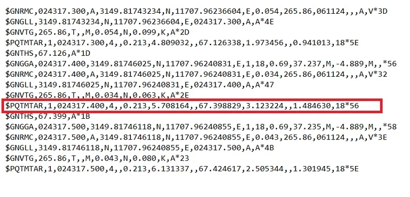 LG580P admite posicionamiento y orientación RTK.Siempre que las antenas duales estén colocadas y fijadas según sea necesario, el ángulo de dirección correspondiente se emitirá automáticamente.Es muy sensible.Los siguientes son los parámetros para imprimir el cabezal y la información de longitud y latitud.
