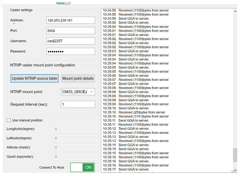 Compre el servicio de cuenta CORS, acceda al servidor para cargar datos GGA y obtenga datos de referencia de la estación base RTCM enviados por el servidor.