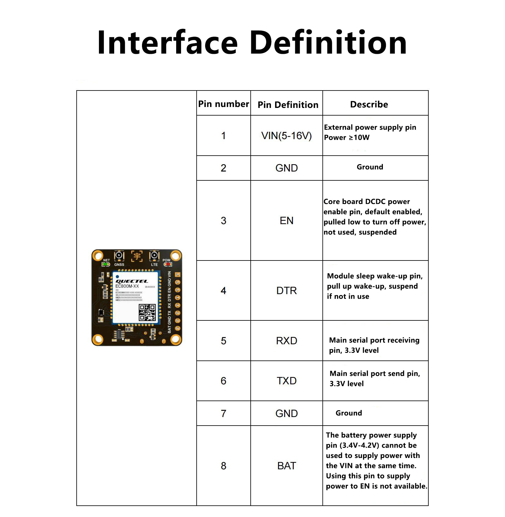 El puerto serie principal se puede utilizar para la comunicación de comandos AT y la transmisión de datos. La velocidad en baudios predeterminada es 115200. Utilizado para comando AT