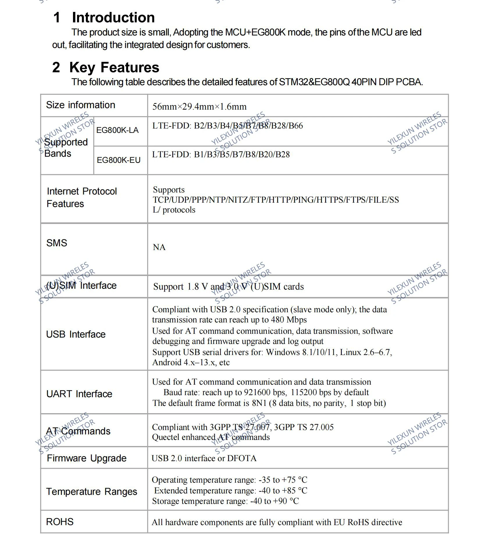 QUECTEL STM32 y EG800K 40PIN DIP PCBA EG800K-EU EG800K-LA LTE Cat1 bis Módulo Placa central