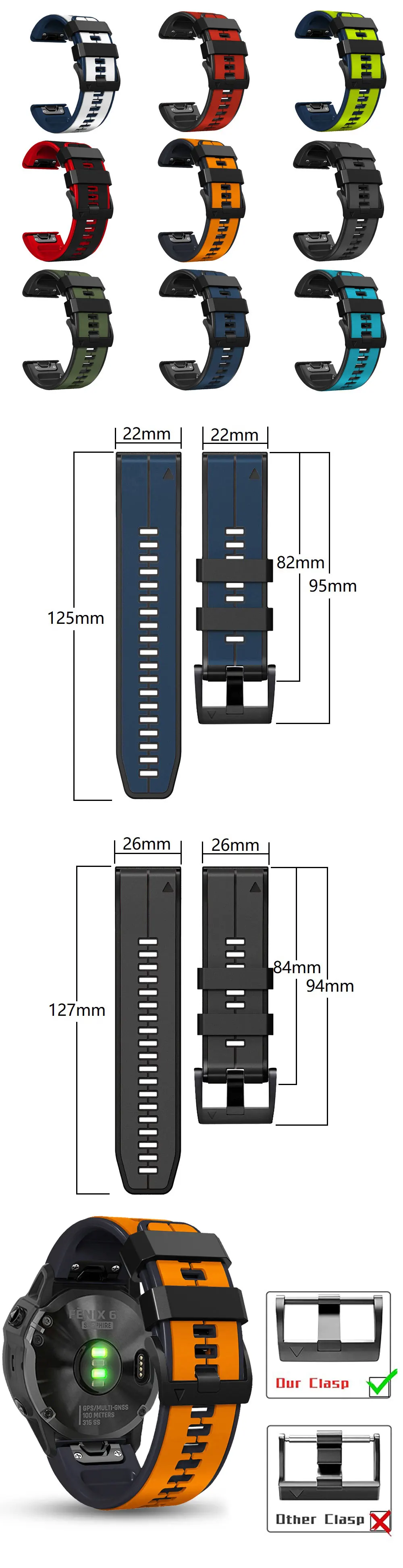 Características:* Ancho de banda: 22mm 26mm* Material: Hecho de silicona de alta calidad, saludable y respetuoso con el medio ambiente* Moldeado por compresión, resistente y duradero* Material: silicona* Suavidad moderada, uso muy cómodo* Fácil de ajustar la longitud para adaptarse a su muñecaDebido a las diferentes configuraciones del monitor y la diferente iluminación ambiental, es posible que la imagen no refleje el color real del artículo. Gracias por tu comprensión.