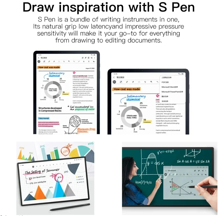 * S Pen facilita el seguimiento de las tareas escolares.Al tomar notas, puede anotar primero y cambiar de color más tarde.