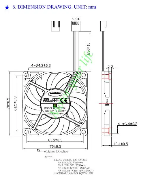 70X70X10mm 0.35A 4200RPM 25CFM 40dBA 4P Ventiladores de refrigeración PWM de 4 pines