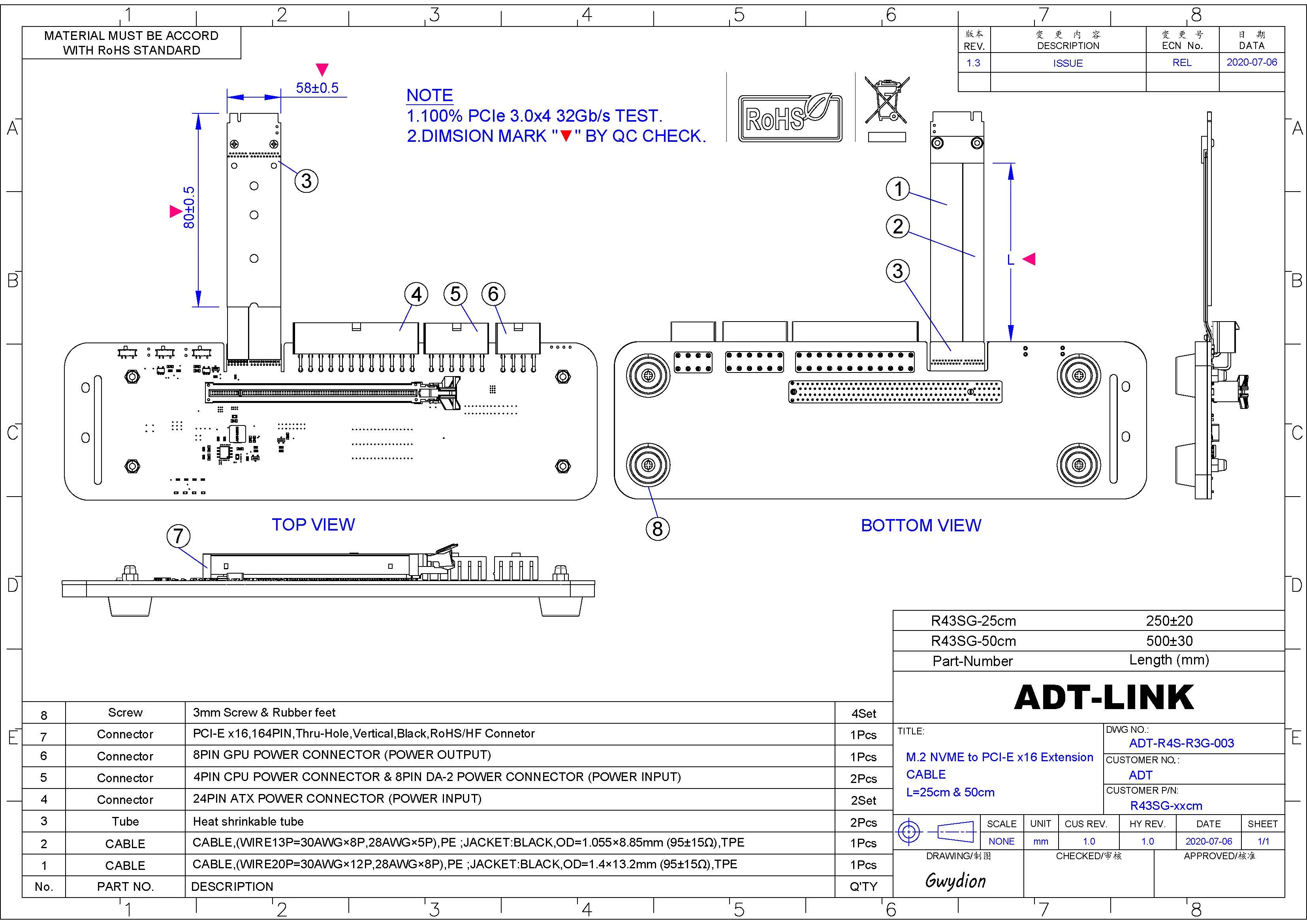 Product name: PCIe 3.0 / 4.0 x16 to M.2 M-Key extension cable