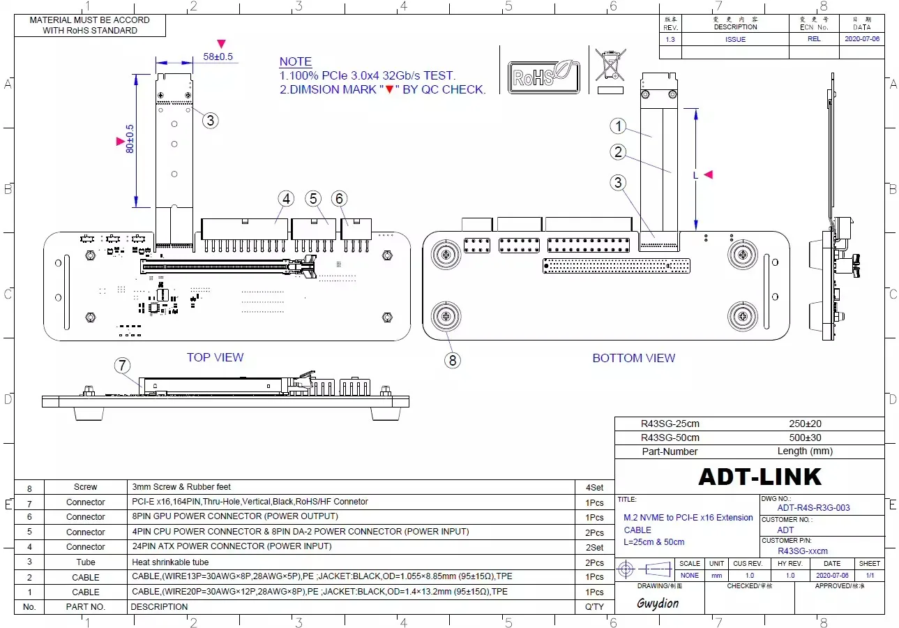 ADT R43SG es un adaptador pasivo PCIe de 4 carriles con límite de ancho de banda de 8Gbps que cumple con la especificación PCI Express 3,0