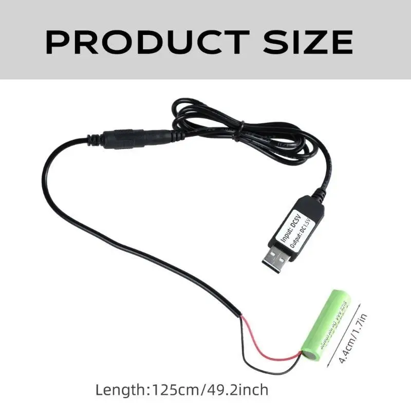 Entrada USB 5V2A, salida 1,5V1A, cómoda de usar, en lugar de 1 batería AM-4 LR03 de 1,5V