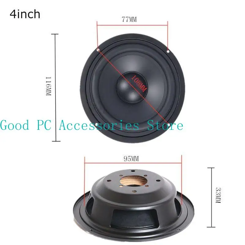 4 inch: horn diameter: 116mm/4.5in, diagonal twisting hole spacing: 108mm/4.2in, opening hole: 95mm/3.7in, counterbore depth+height: 2.5mm+33mm/0.09+1.2in
