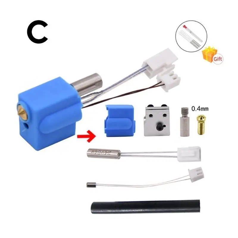 Type 3 Set includes:1x0.4mm Nozzle,1xSilicone Case,1xHeating Block,1xHeater Thermistor,1xCleaning Needle,1x2PIN white terminal(60mm);