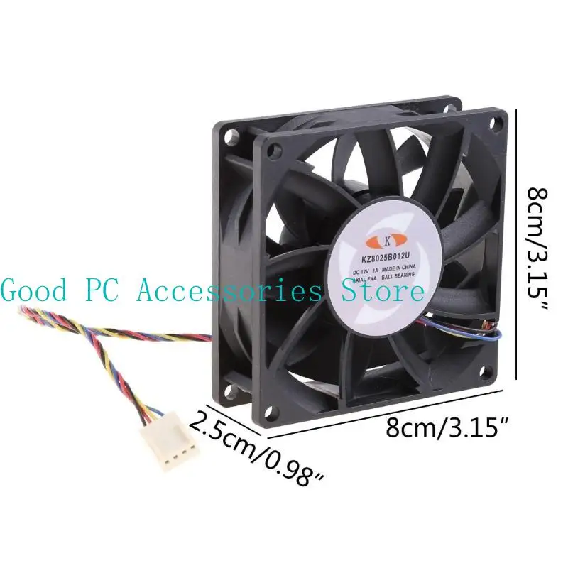 Características:80 x 80 x 25 mm (3,15 x 3,15 x 1 pulgada)| Voltaje: 12V| Corriente: 1,00 A.| Flujo de aire: 85,2 CFM| Potencia: 12W| Velocidad: 6500RPM| Conector: 4PIN.
