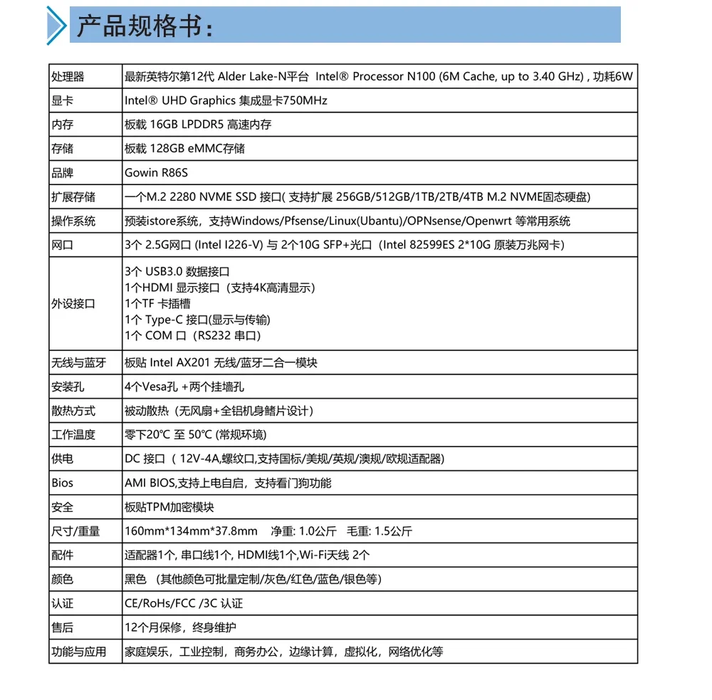 Comprar R86S FLN100 Procesador sin ventilador de 12.a generación Dual 10G y 3 2.5G Multi Puerto 10G R86S Mini