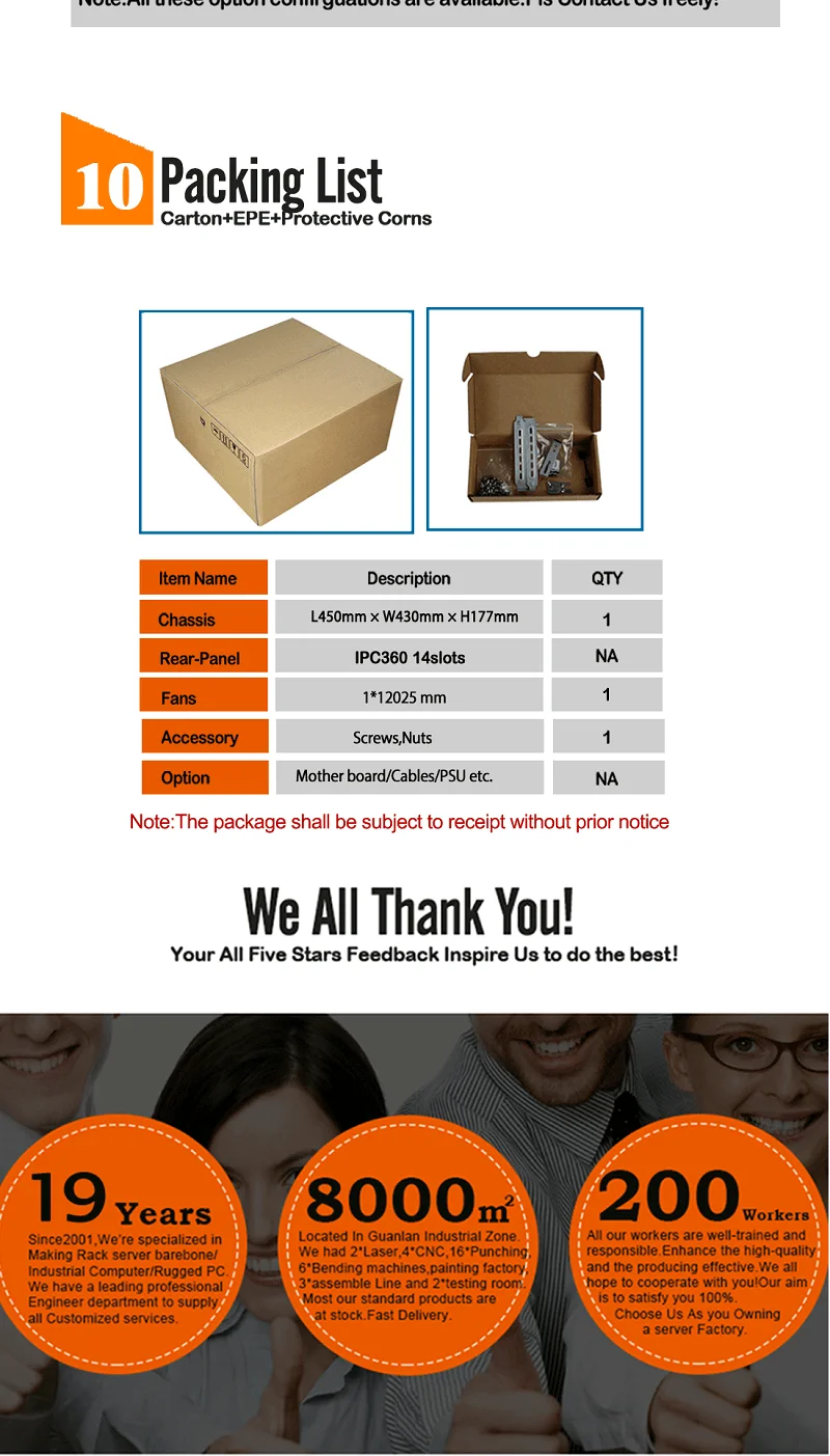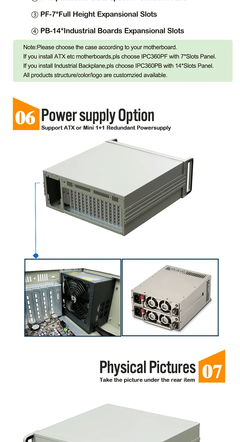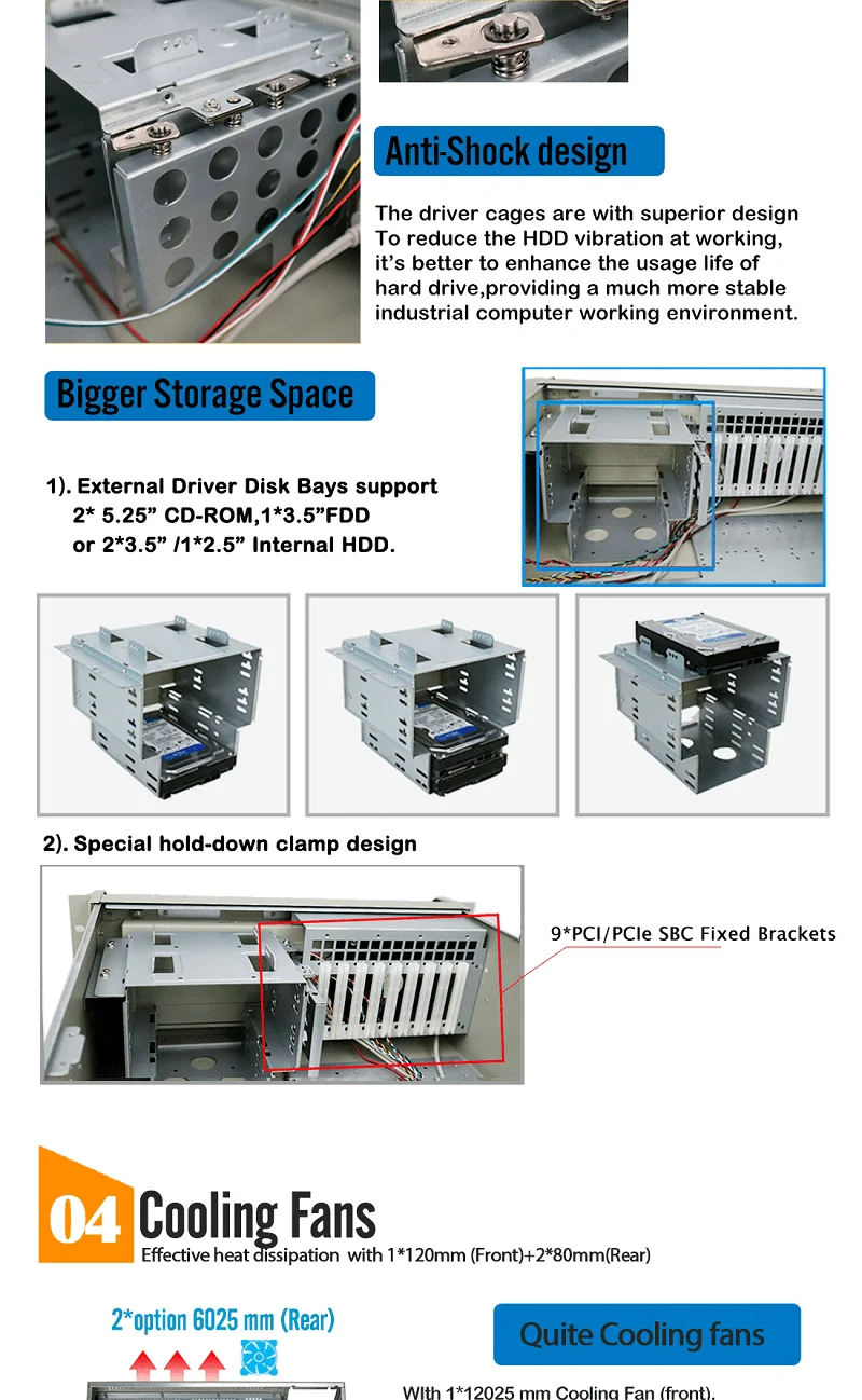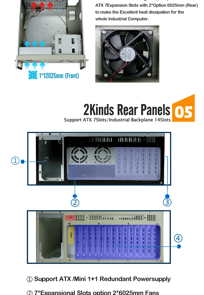 IPC360 es el clásico chasis de computadora industrial 4U rackmount. Soporta 3*5,25& 1*3,5 "controladores de disco externo con diseño antichoque de goma, mejoran el funcionamiento de los controladores de disco más estable. ¿Apoyo placa base ATX con 7 * de altura completa ranuras de expansión o panel posterior Industrial con 14 * ranuras de expansión? También es compatible con fuente de alimentación ATX o Mini fuente de alimentación redundante. Es una buena elección para elControl industrial, transporte inteligente, automatización mecánica, IOT, monitoreo de seguridad, etc.