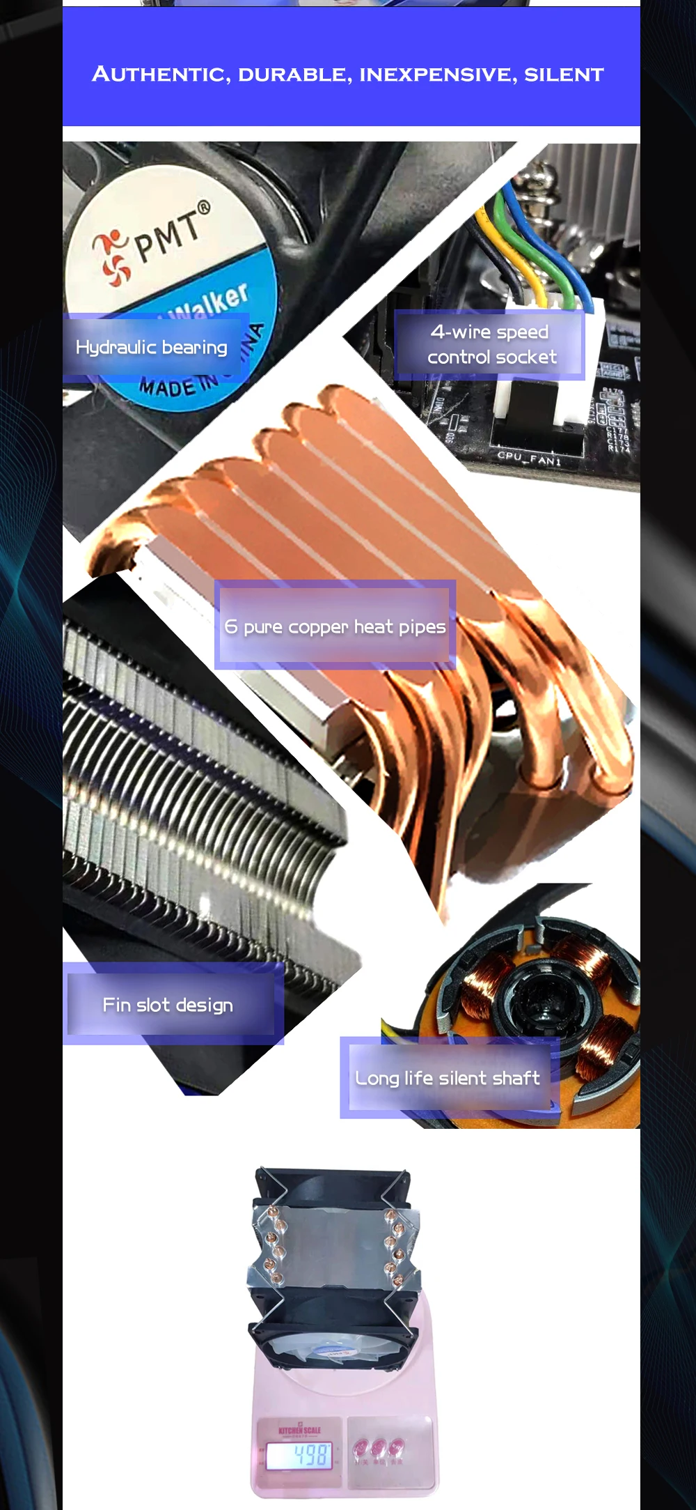 Comprar Radiador de 6 tubos de calor ARGB para CPU Intel LGA1700, disipador de calor, torre de carcasa de ordenador de escritorio, PWM, Ventilador de refrigeración silencioso