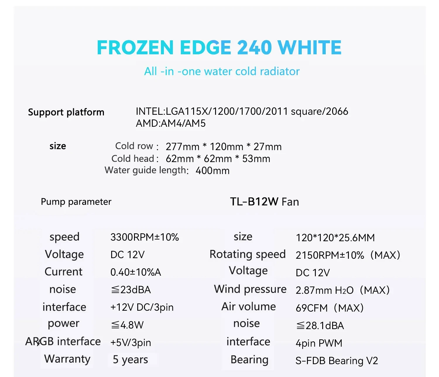 Comprar Radiador de agua fría integrado Thermalright Frozen Edge 240 CPU para Intel LGA 115x 1200 1700 2011 2066 AM4 AM5