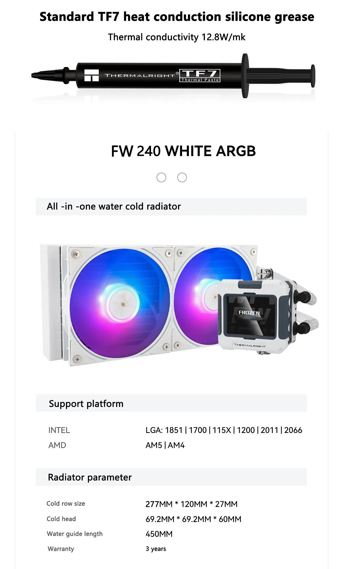 Comprar Radiador de agua fría todo en uno Thermalright FW 240 ARGB, pantalla LCD giratoria magnéticamente de 2,4 pulgadas, compatible con LGA1700/AM5/AM4