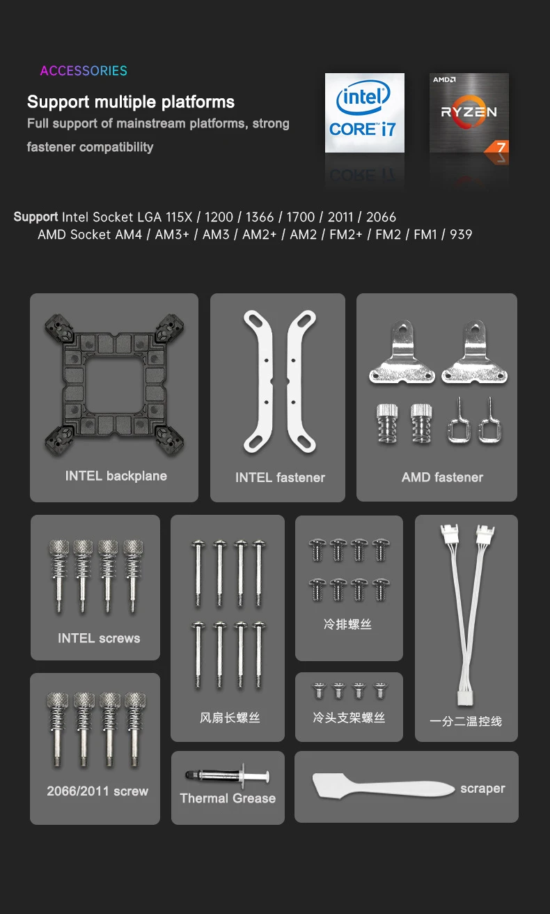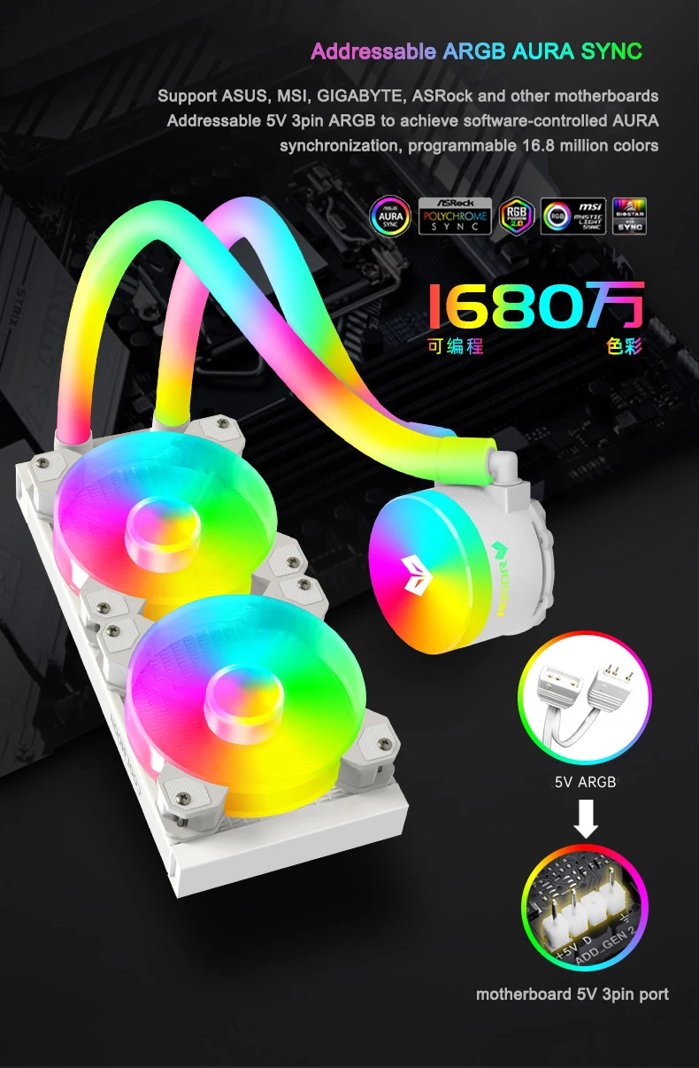 Radiador de agua RGB CPU AIO 240 para Intel AMD, Control de temperatura PWM, disipador de calor de CPU de ordenador todo en uno ARGB AURA SYNC