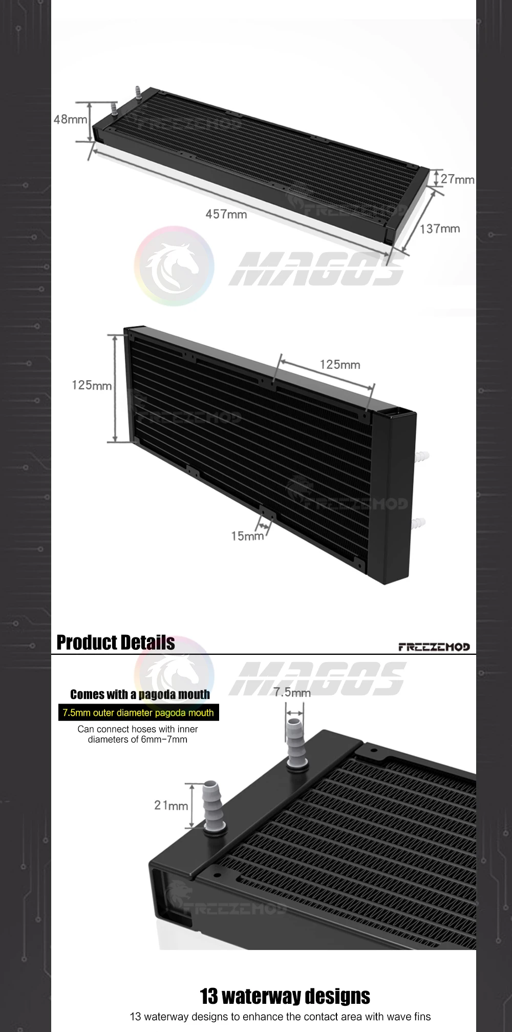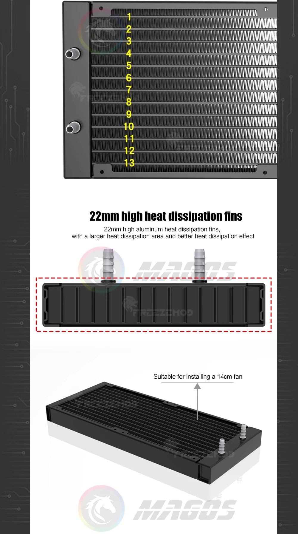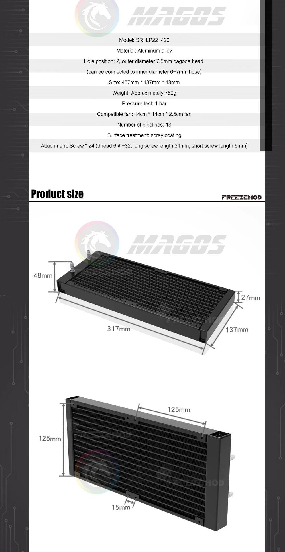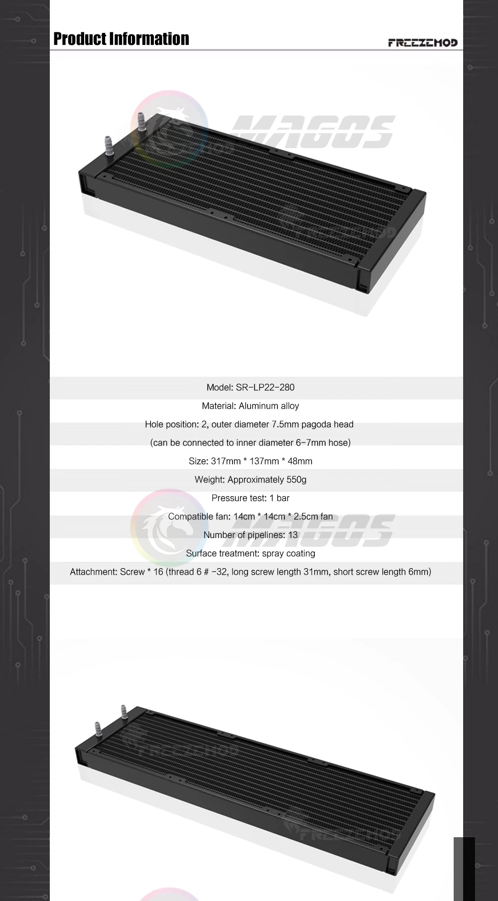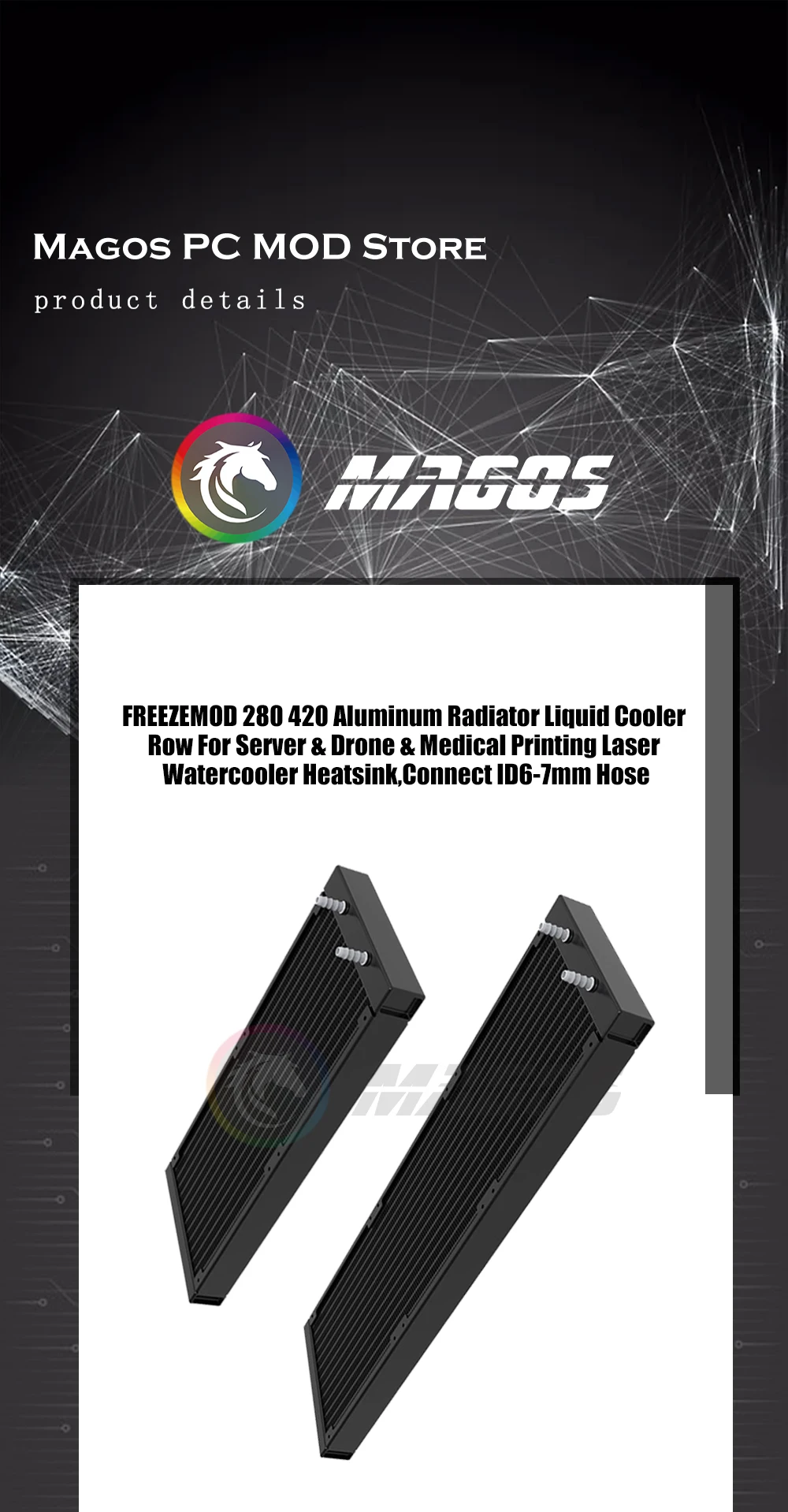 Radiador de aluminio 280 420, fila de enfriador de líquido para servidor, Dron y impresión médica, disipador de calor láser para enfriador de agua, manguera de conexión ID6-7mm