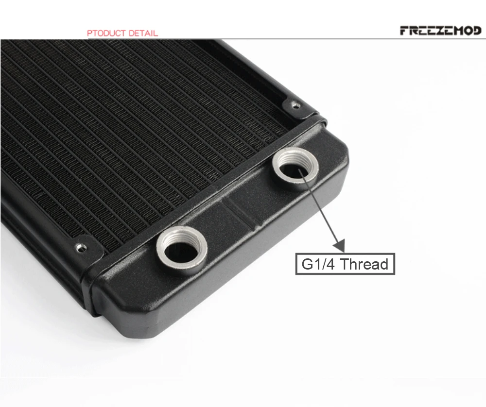 Material: Aluminium alloy Weight: 270~690G Hole position: 2 (G1/4 thread/10mm Green connector for hoses with inner diameters of 8-9mm) Compatible fan: 12cm*12cm*25cm fan Number of pipes: 18 Accessories: 120:Screw*8 240:Screw*16 360