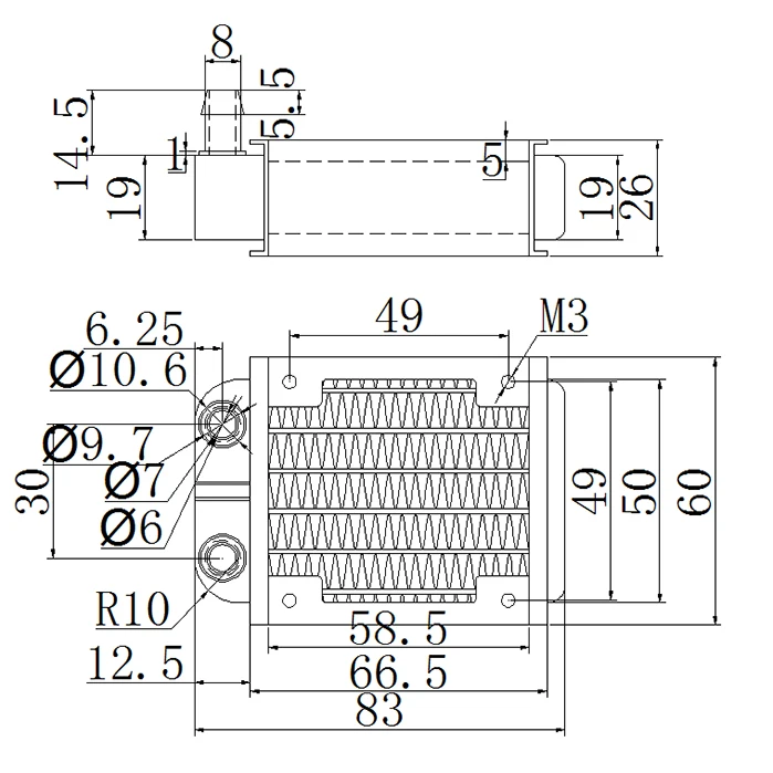 Nota:Super Mini disipador de calor, posición de montaje del ventilador de 6cm, ampliamente utilizado en UAV, cámara, impresión 3D, corte láser pequeño y otras aplicaciones industriales