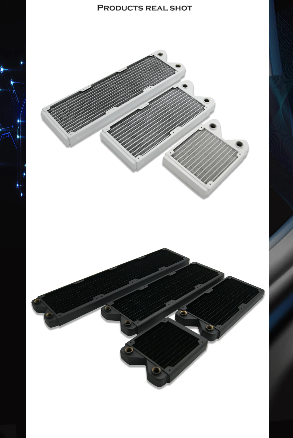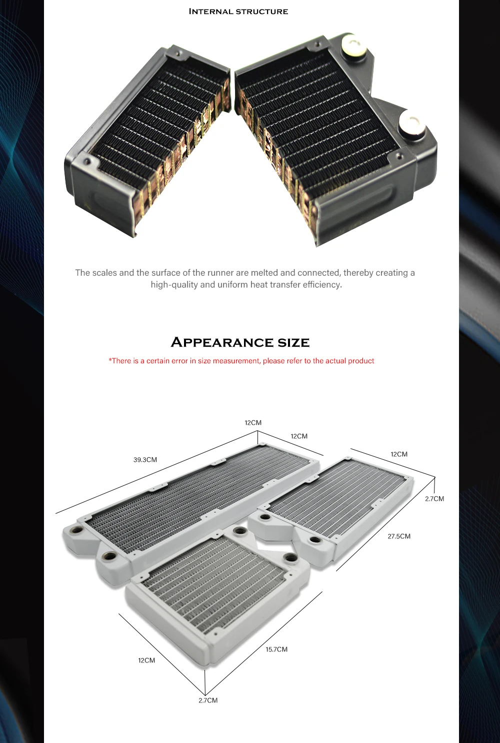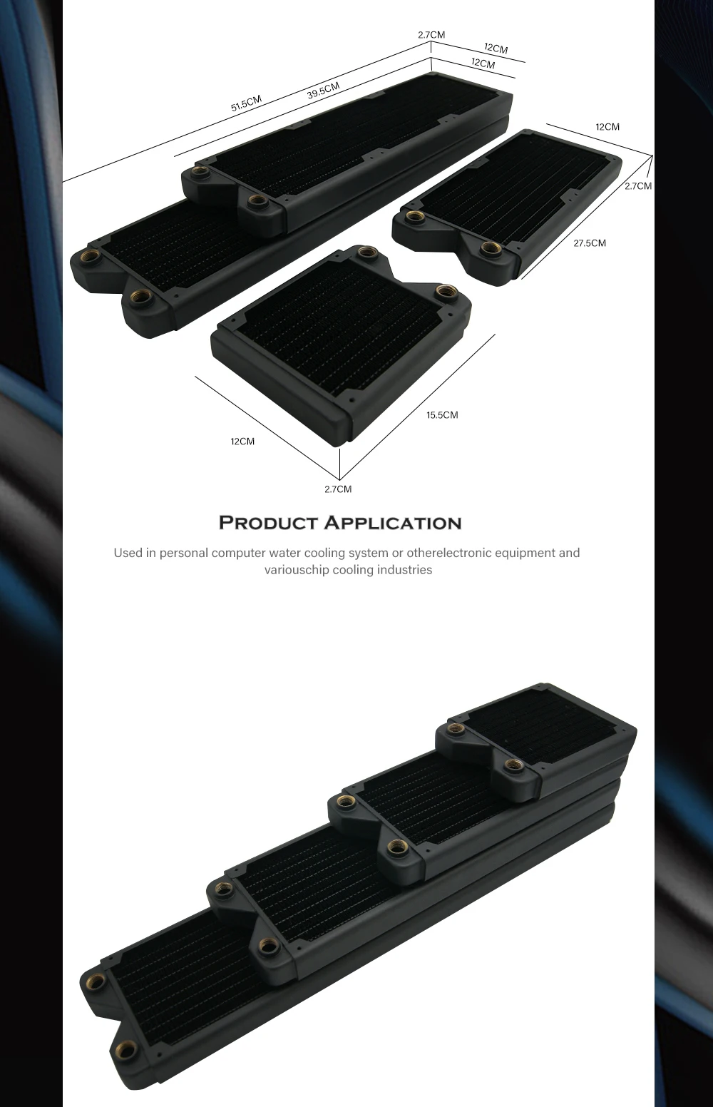 120/360/240/480mm Copper Radiator for PC Cooling 27mm Thickness G1/4'' Thread 12cm Fan Water Cooler Heatsink Black/White