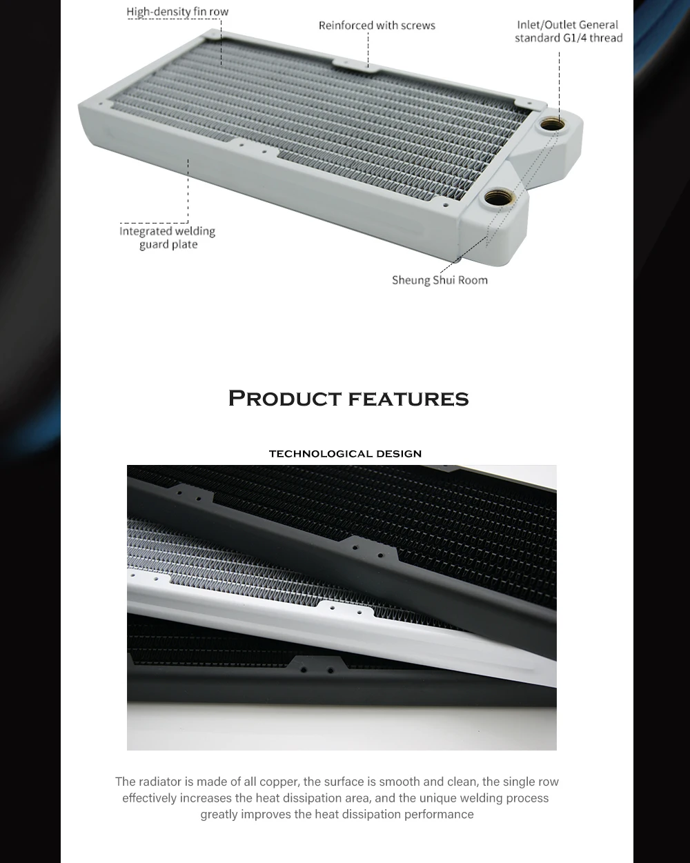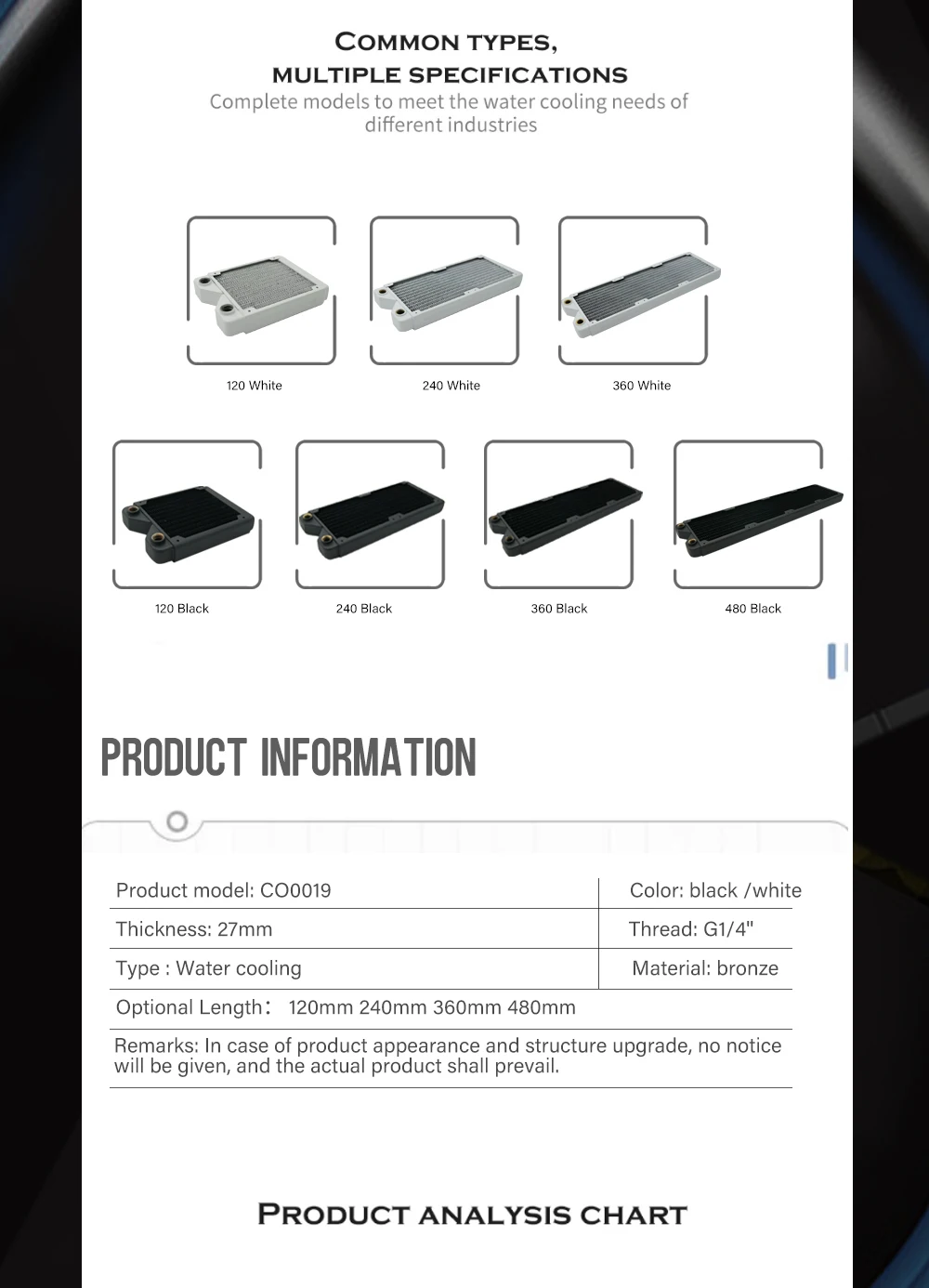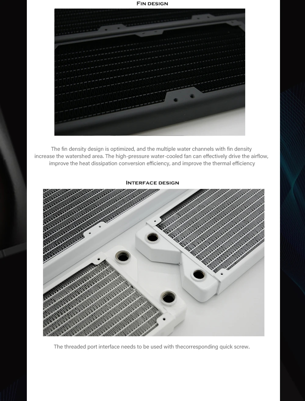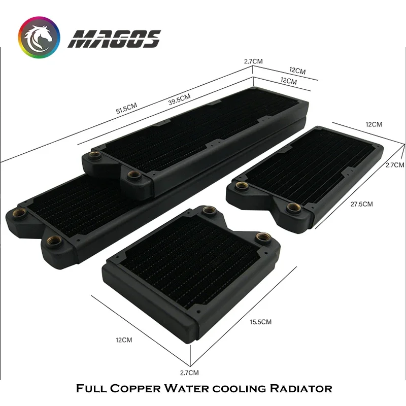 120/360/240/480mm Copper Radiator for PC Cooling 27mm Thickness G1/4'' Thread 12cm Fan Water Cooler Heatsink Black/White